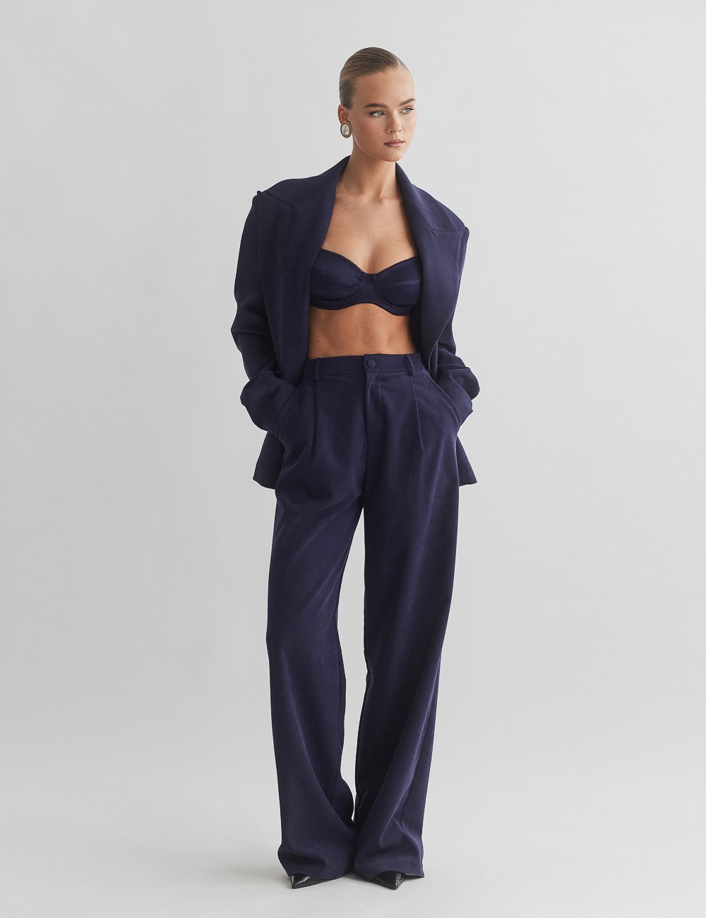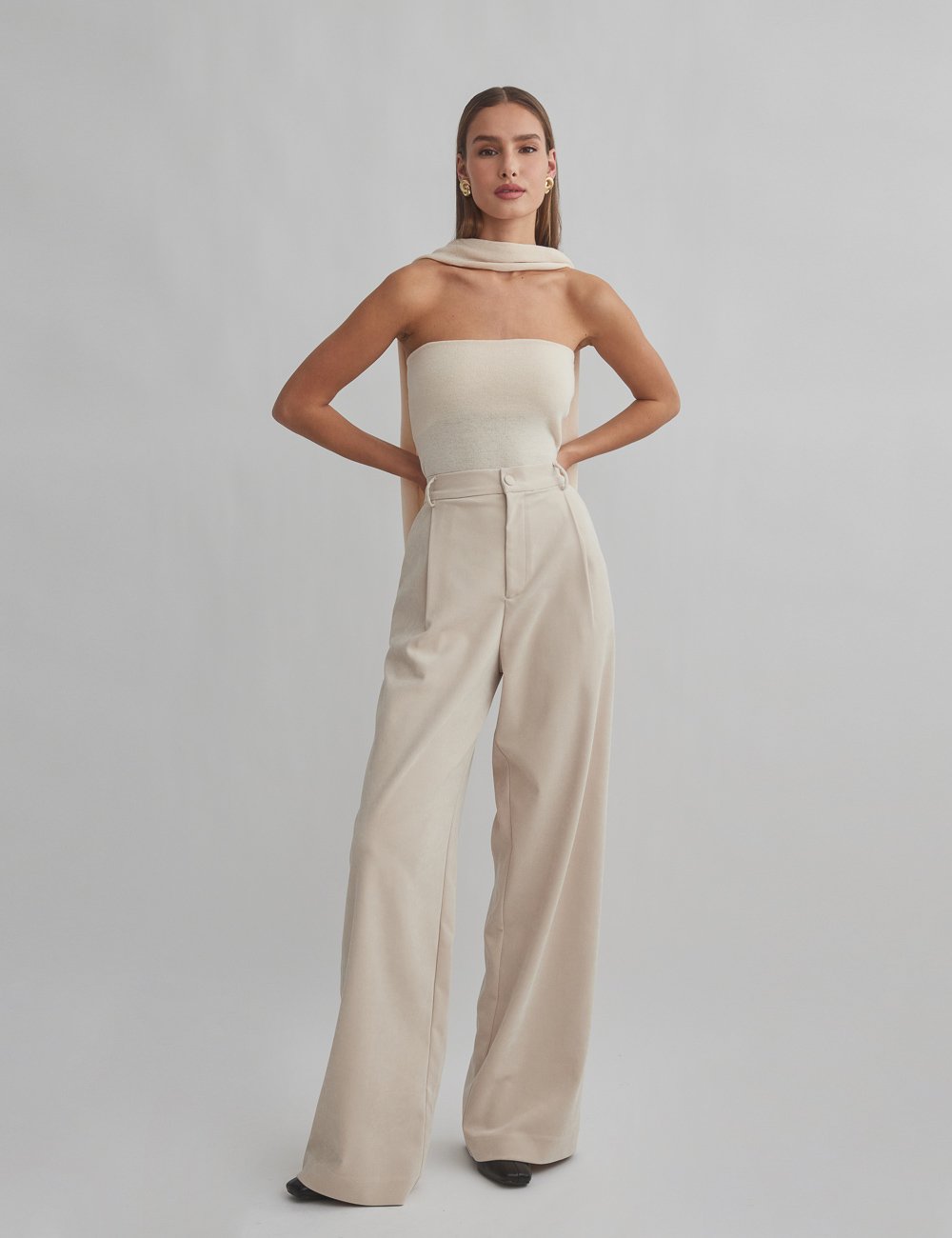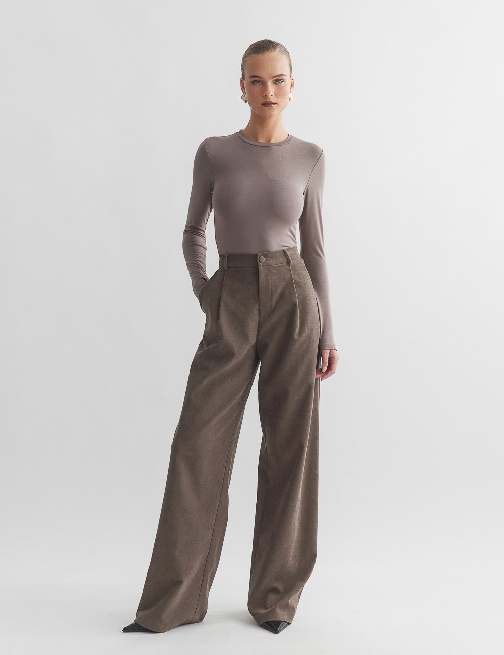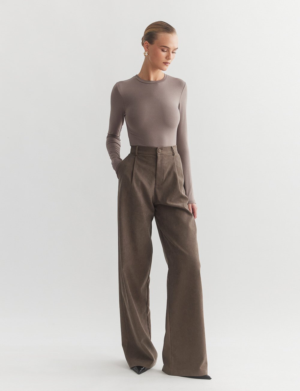 Ίσιο παντελόνι με όψη κοτλέ και πιέτες με τσάκιση εμπρός και τσέπες.