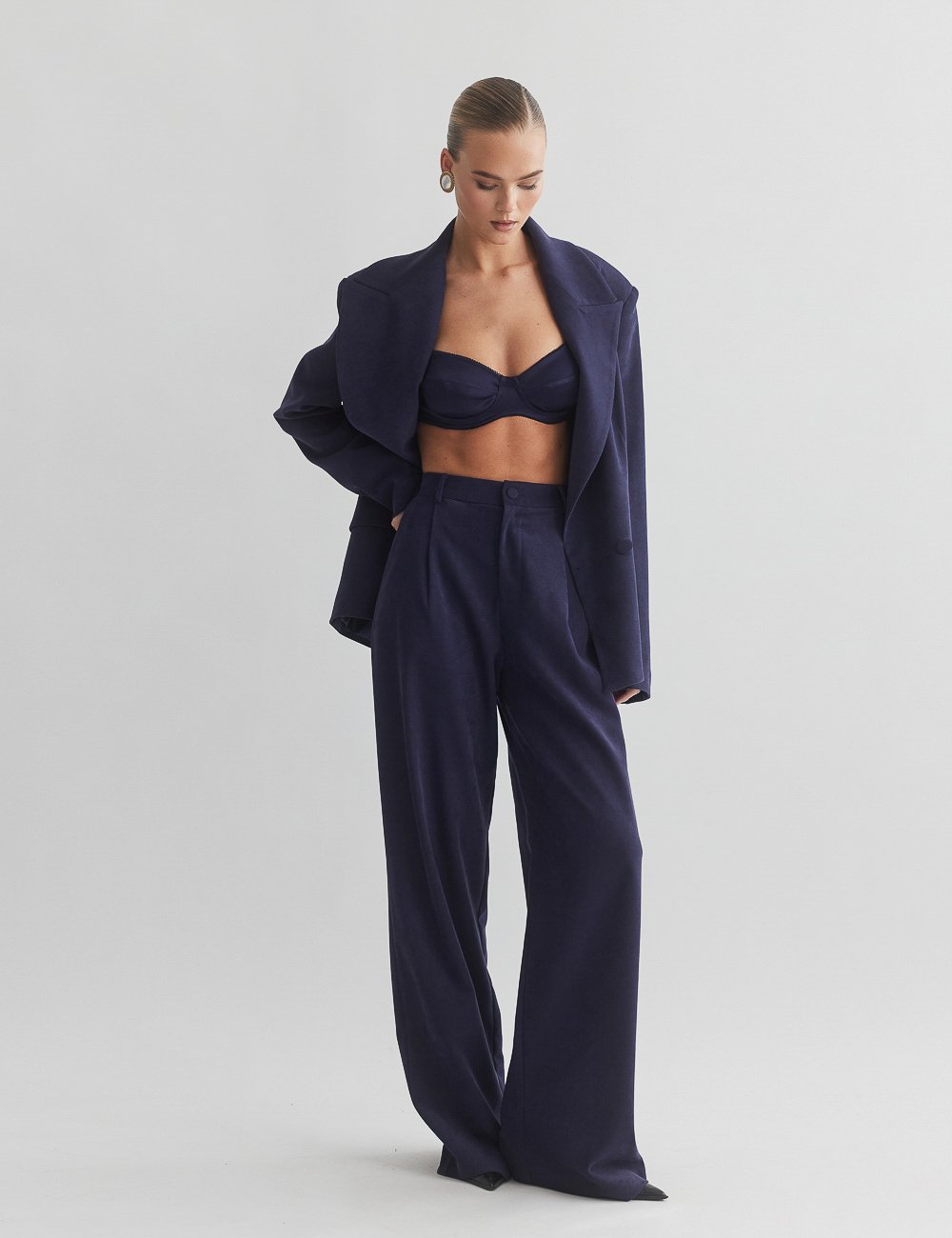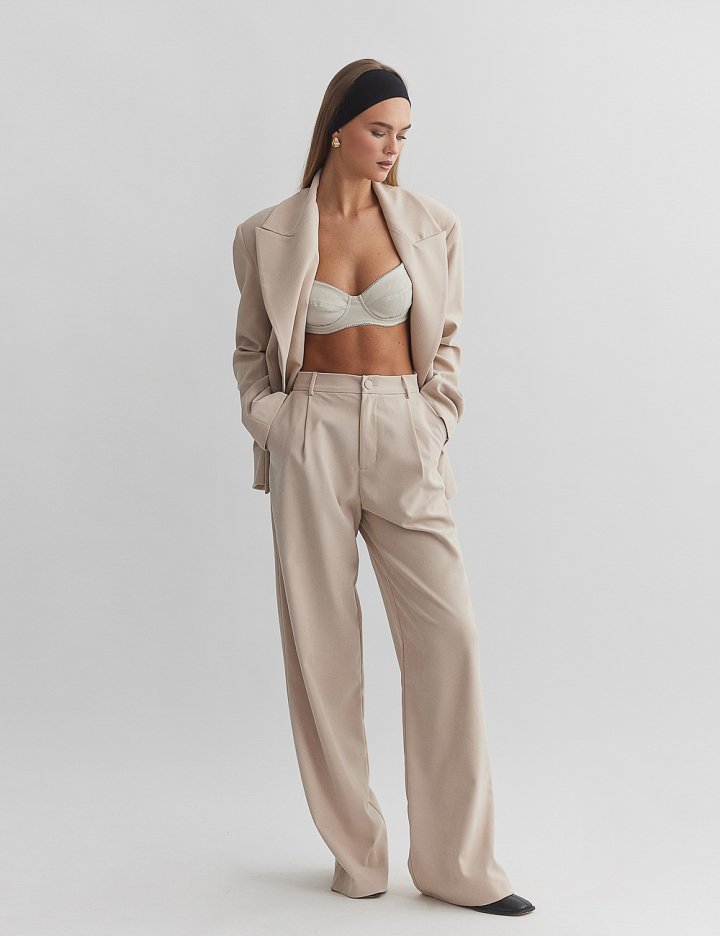 Το προϊόν διαθέτει κανονική εφαρμογή, με ίσιο φαρδύ μπατζάκι, θυλάκια ζώνης, ψεύτικη τσέπη πίσω και κλείσιμο με φερμουάρ και κουμπί.