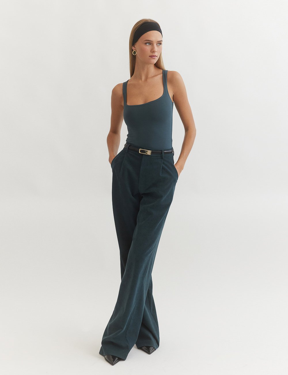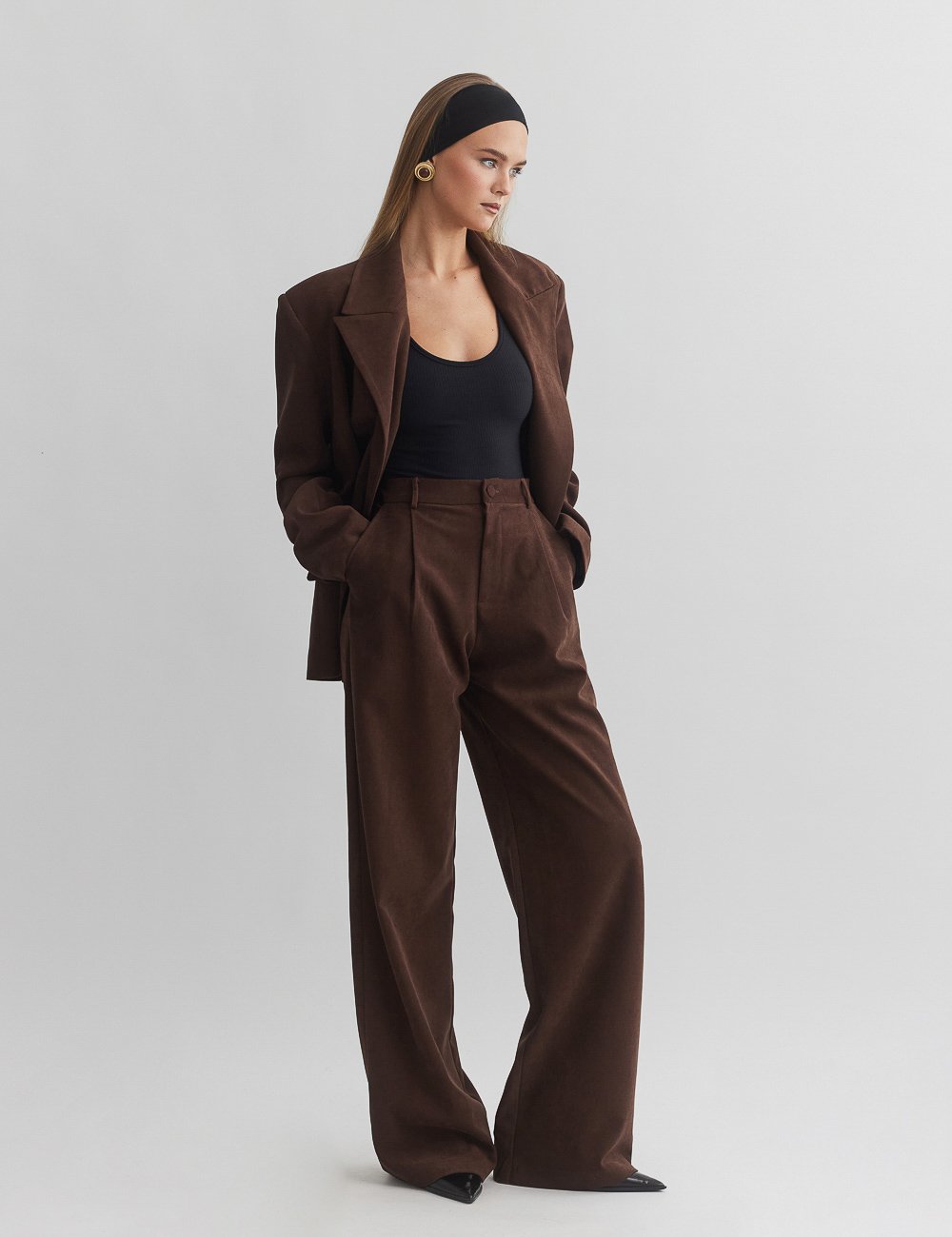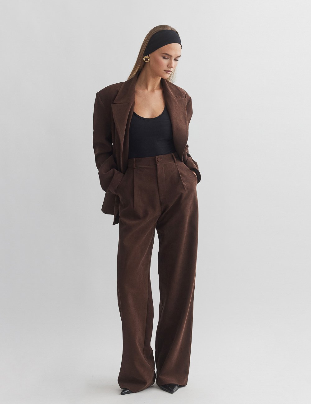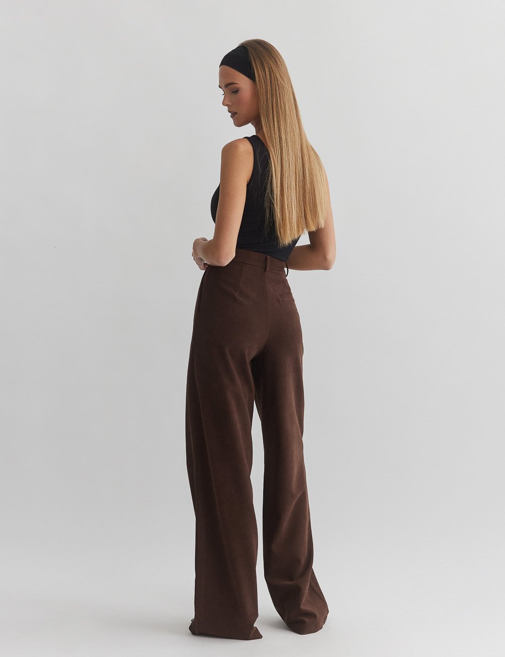 Ίσιο παντελόνι με όψη κοτλέ και πιέτες με τσάκιση εμπρός και τσέπες.