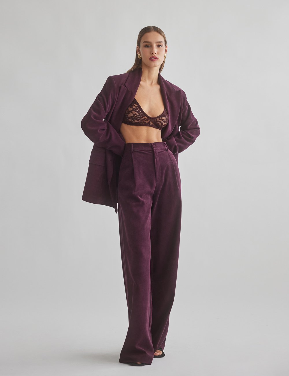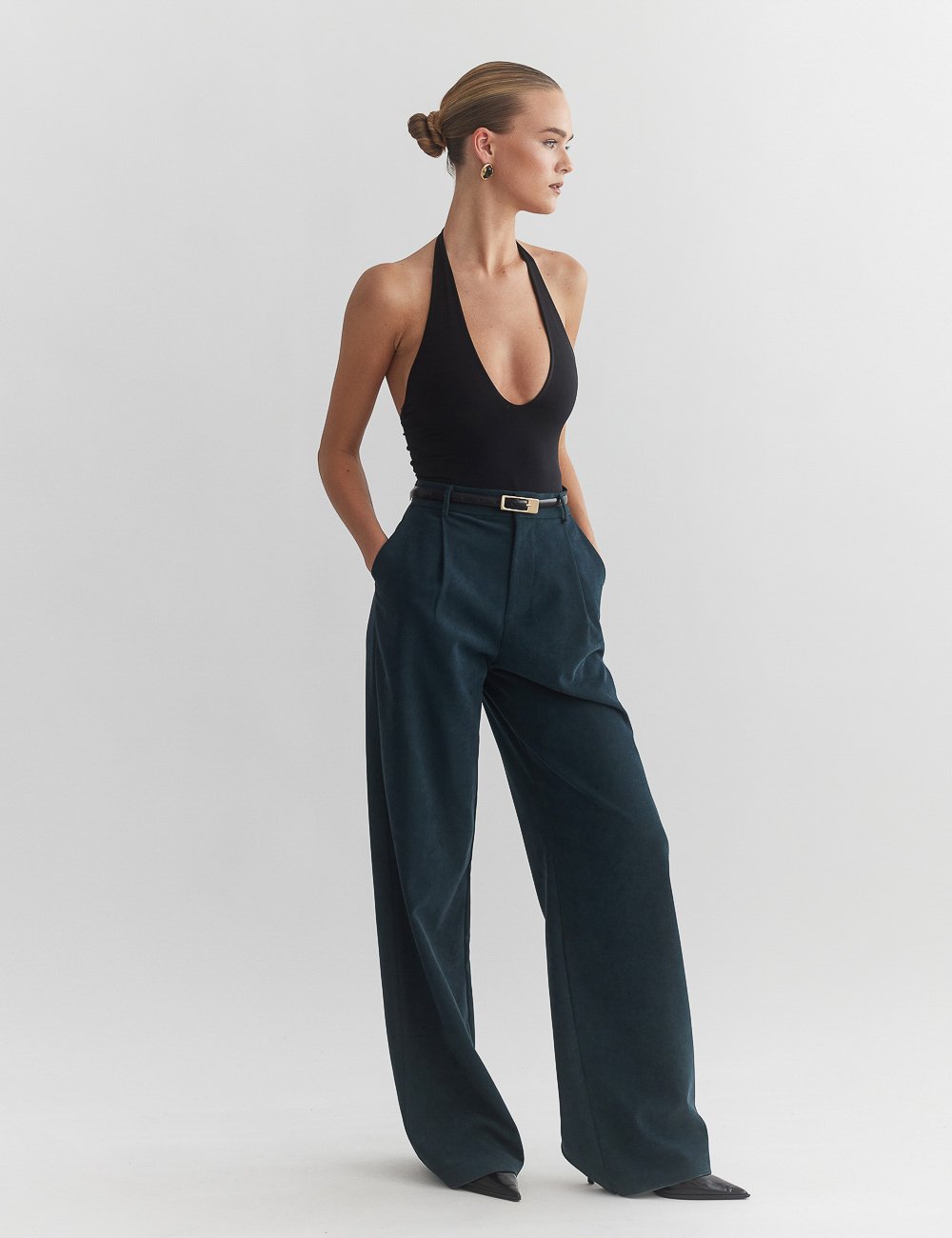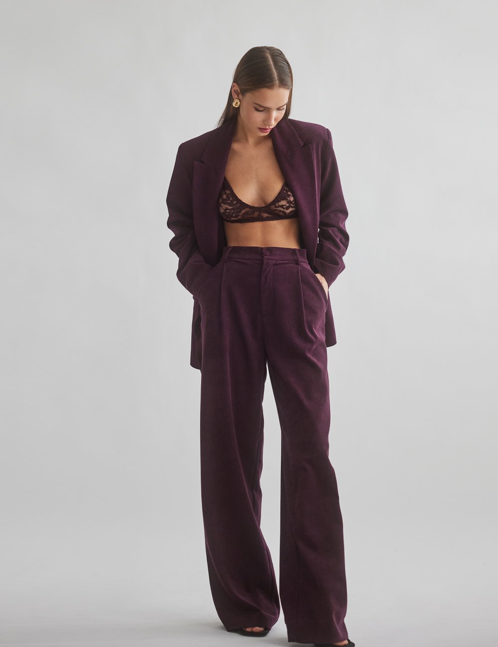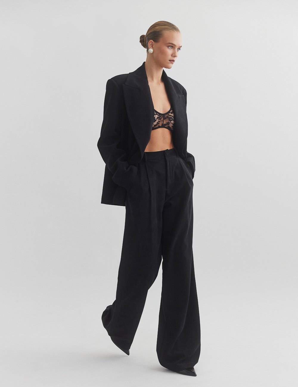 Ίσιο παντελόνι με όψη κοτλέ και πιέτες με τσάκιση εμπρός και τσέπες.