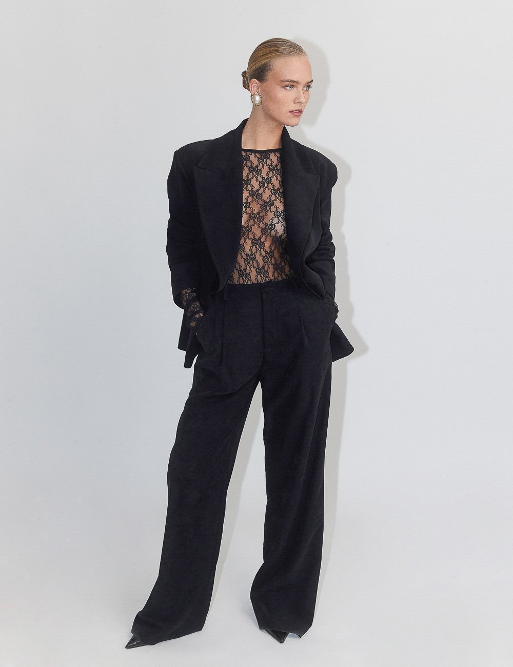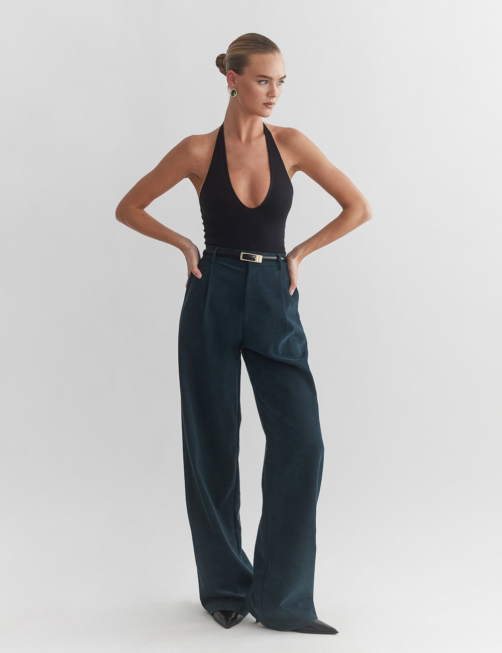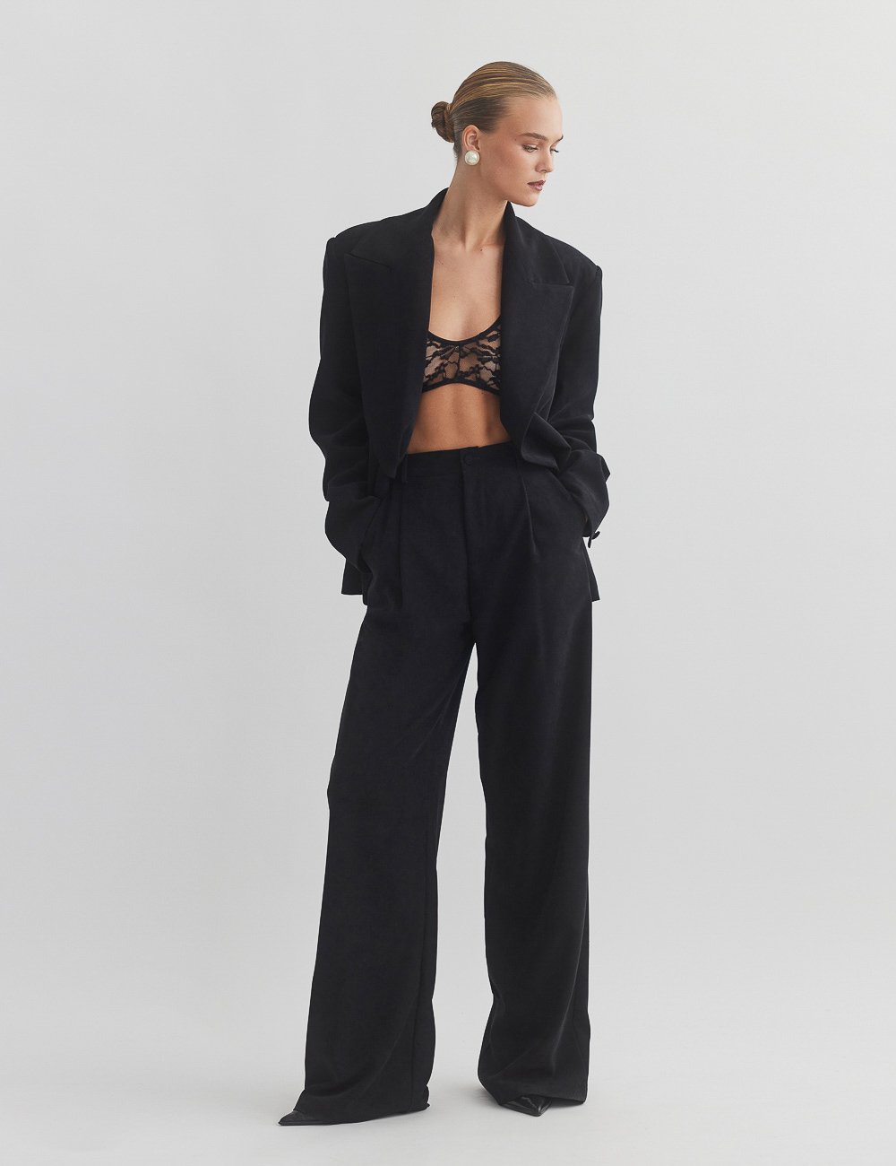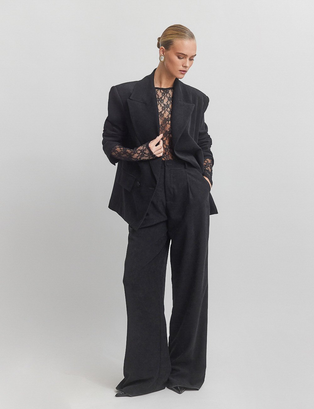 Ίσιο παντελόνι με όψη κοτλέ και πιέτες με τσάκιση εμπρός και τσέπες.