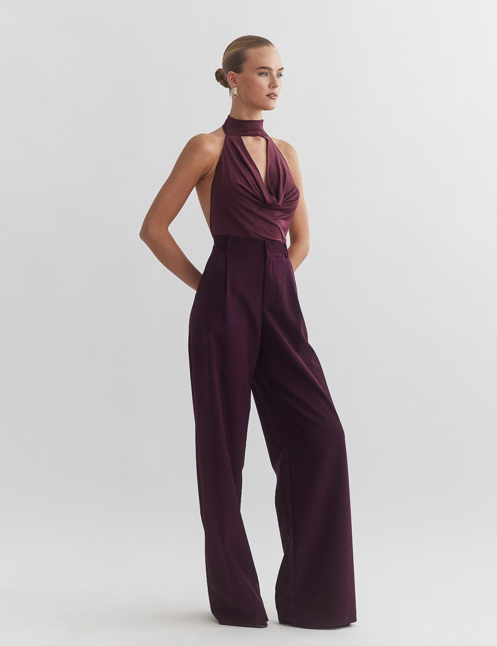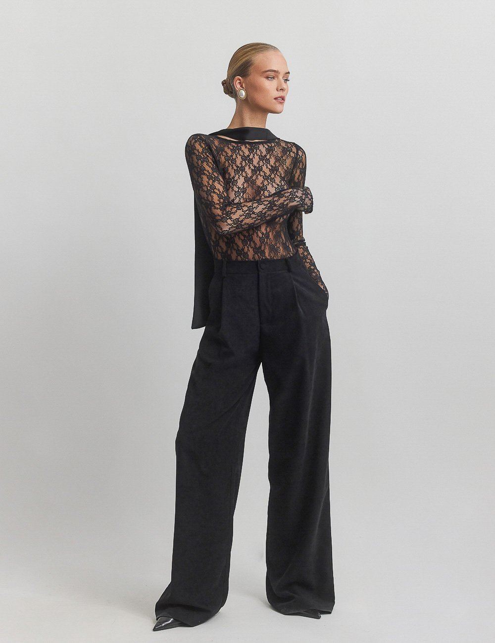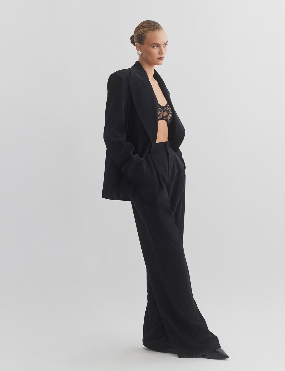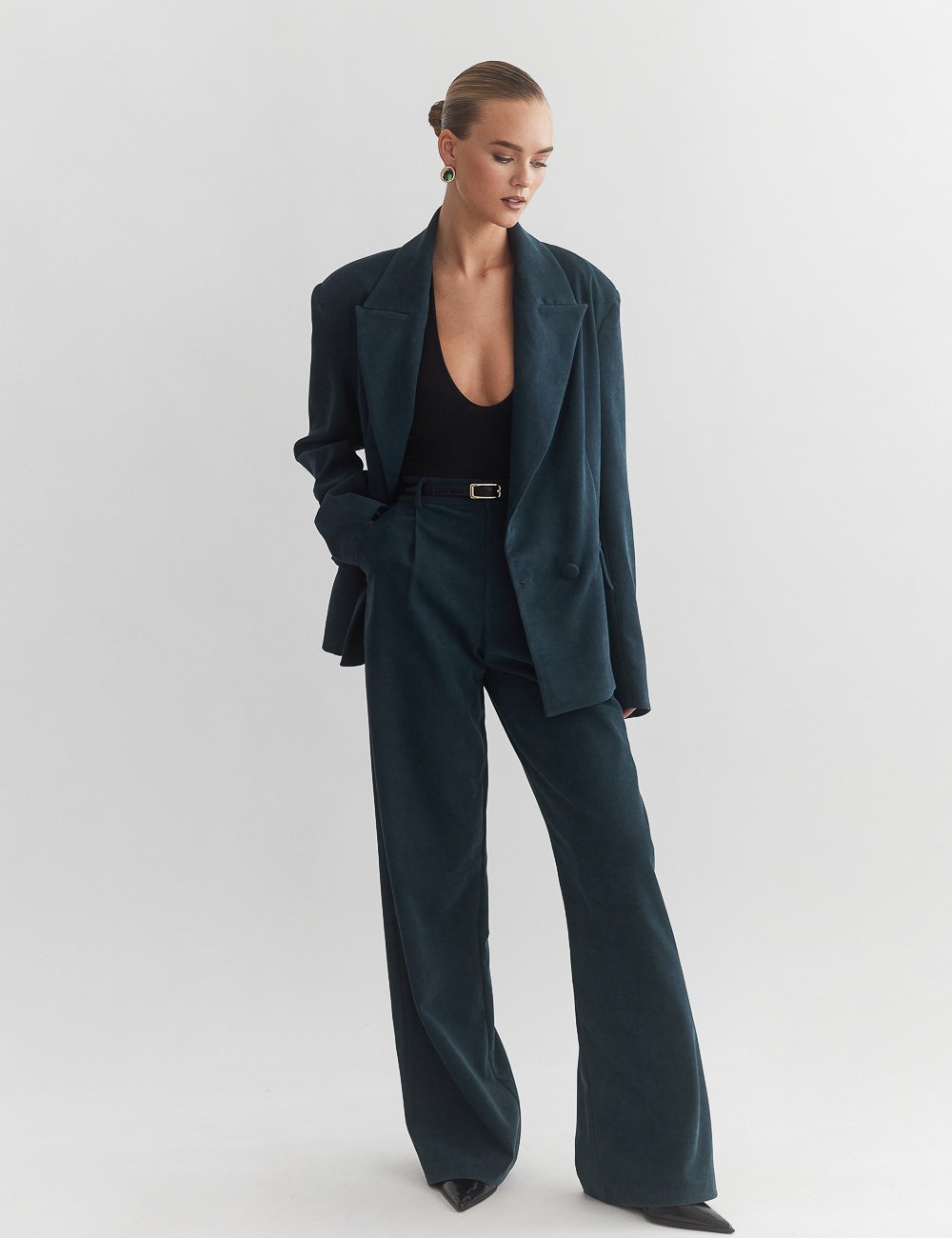 Ίσιο παντελόνι με όψη κοτλέ και πιέτες με τσάκιση εμπρός και τσέπες.