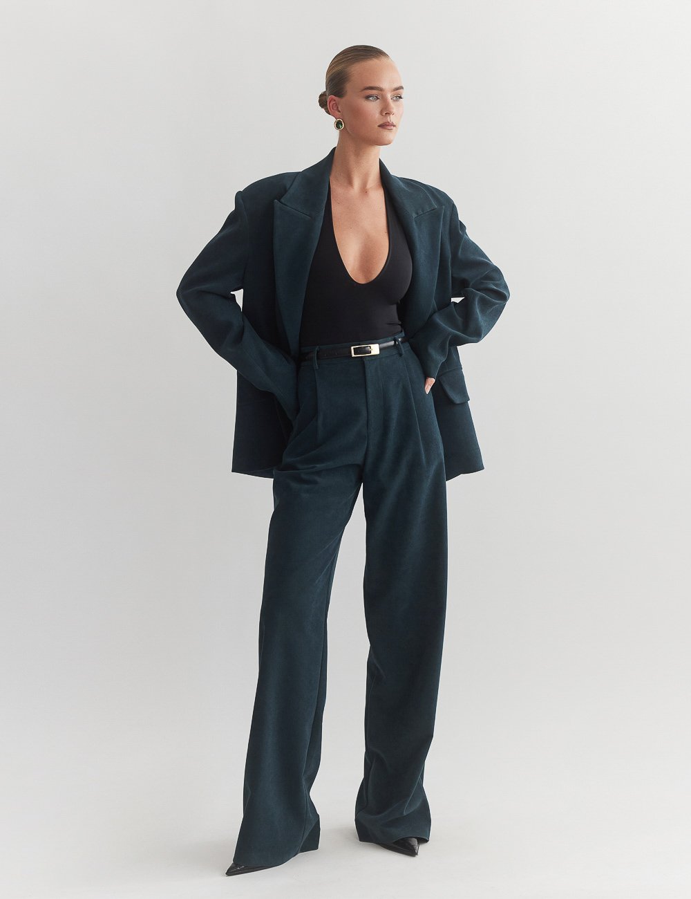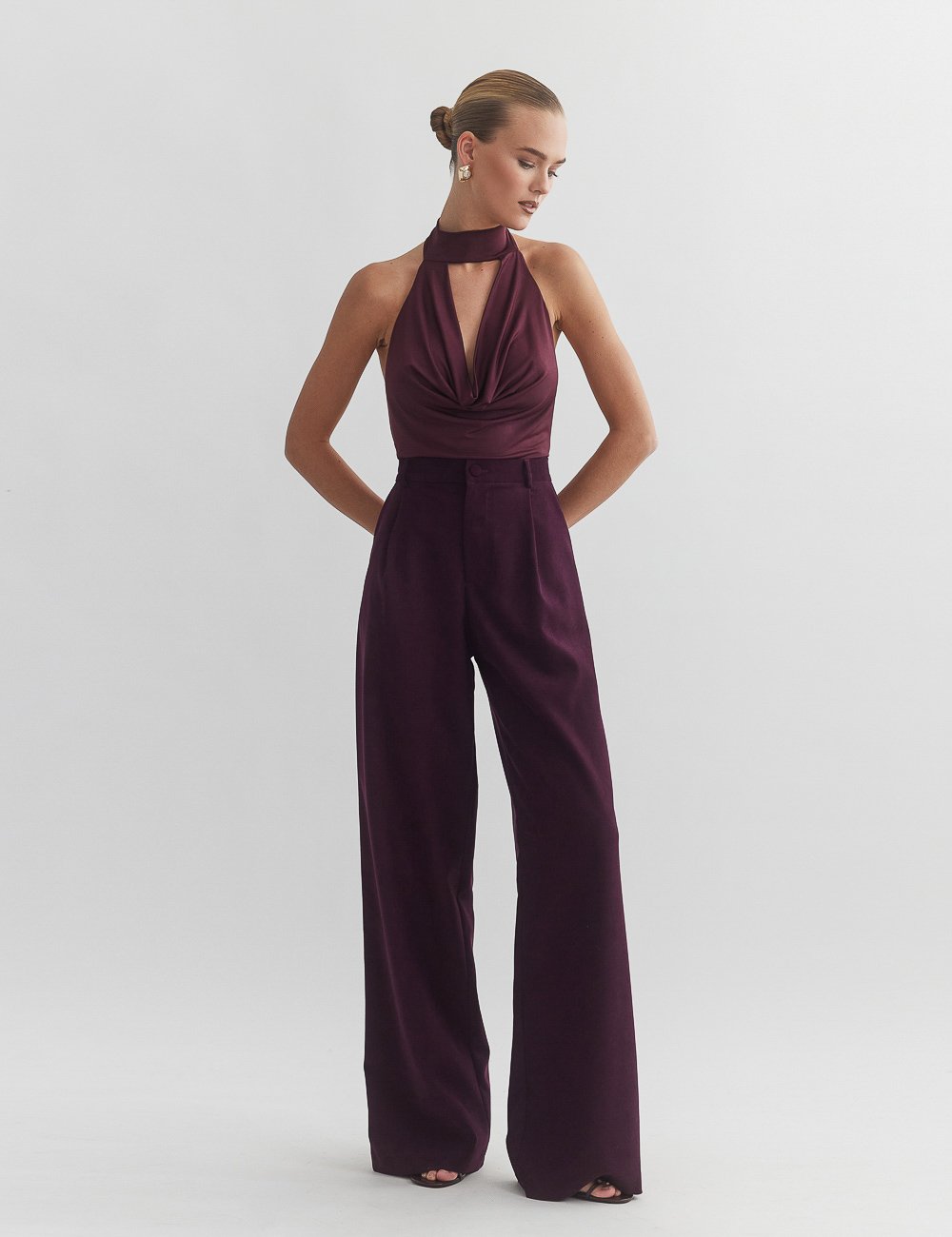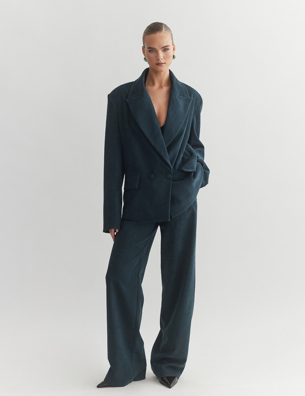 Το προϊόν διαθέτει κανονική εφαρμογή, με ίσιο φαρδύ μπατζάκι, θυλάκια ζώνης, ψεύτικη τσέπη πίσω και κλείσιμο με φερμουάρ και κουμπί.