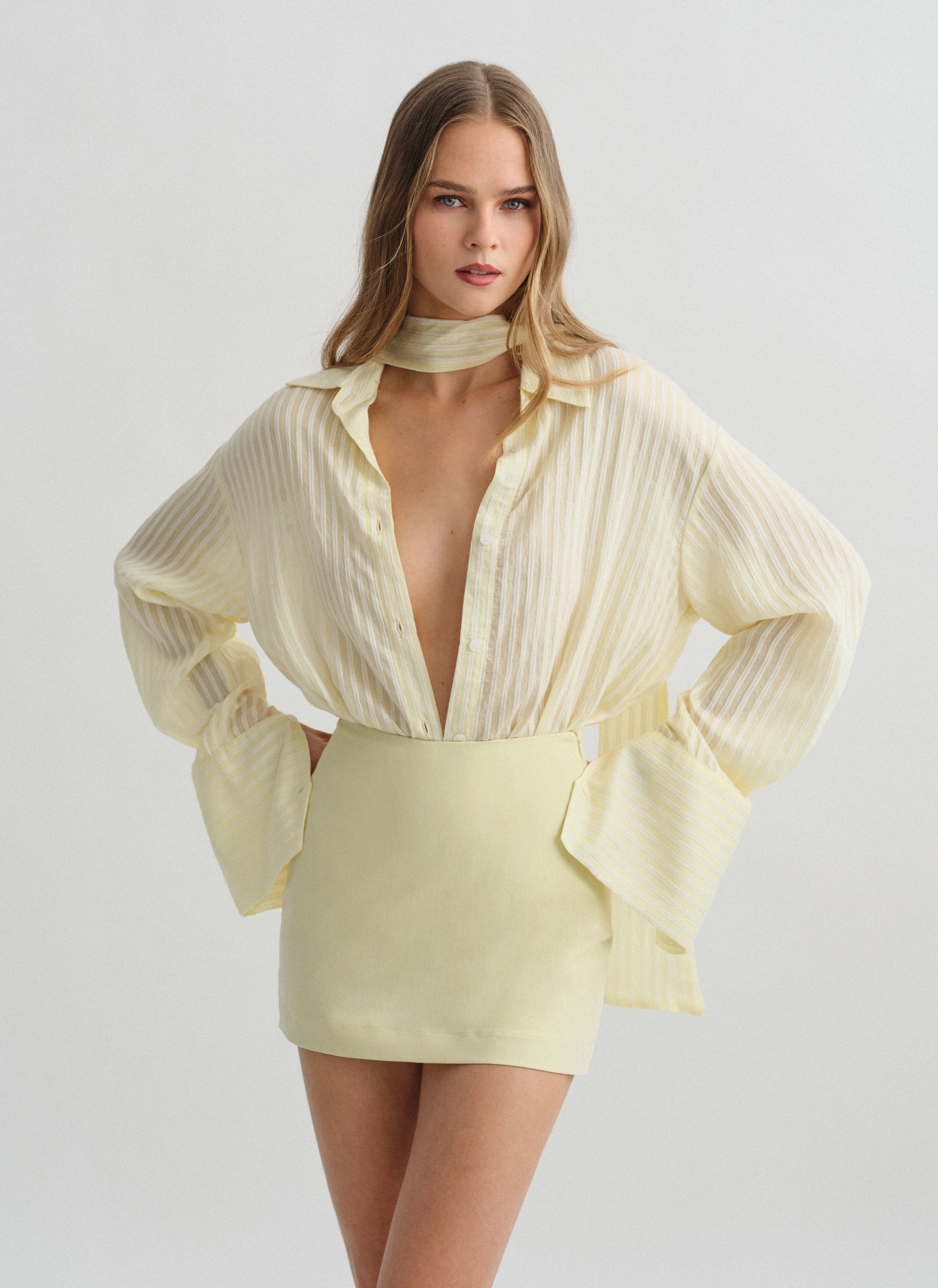 Ψηλόμεση υφασμάτινη παντελονόφουστα με κρυφό φερμουάρ στο πλάι.