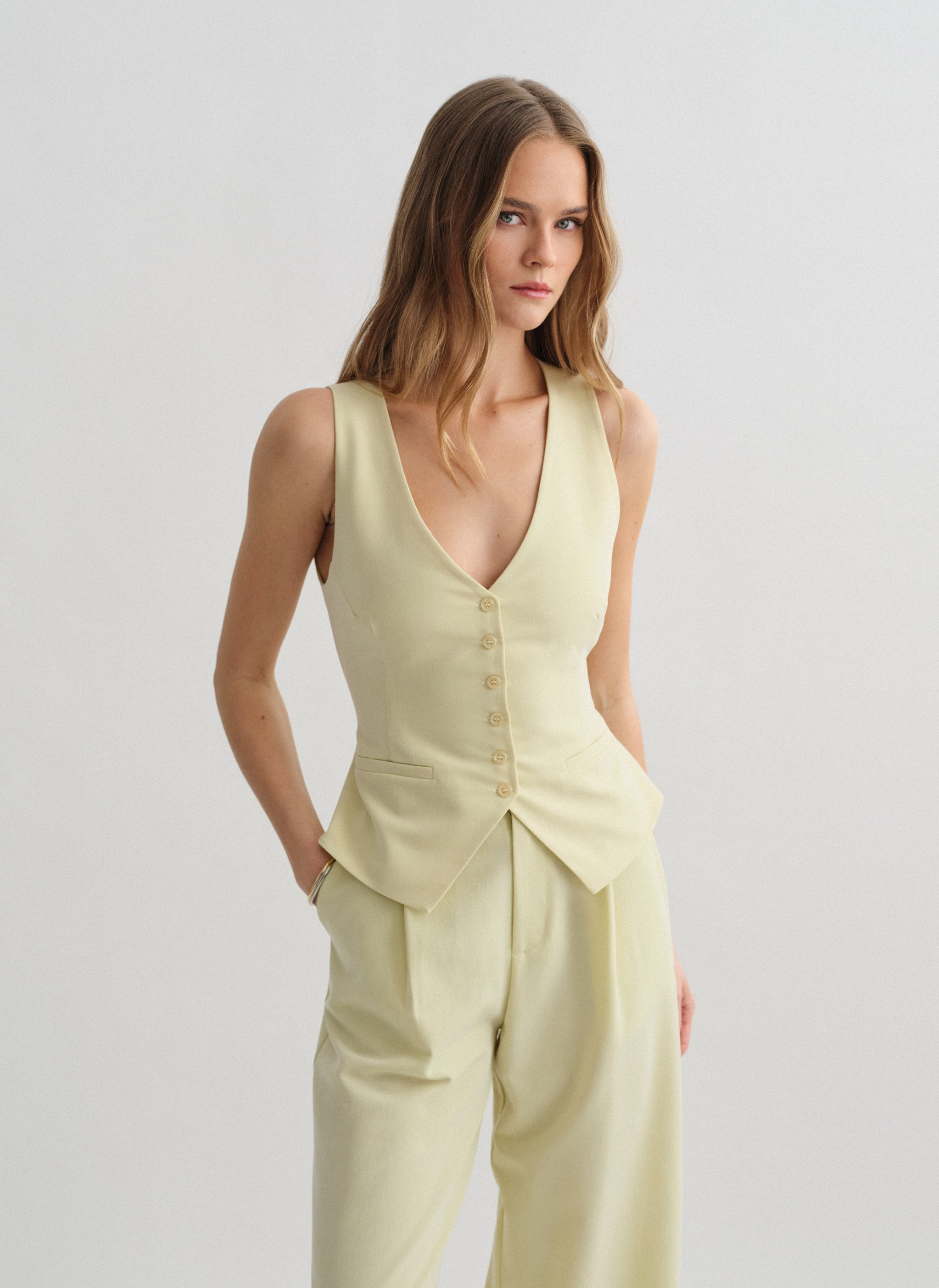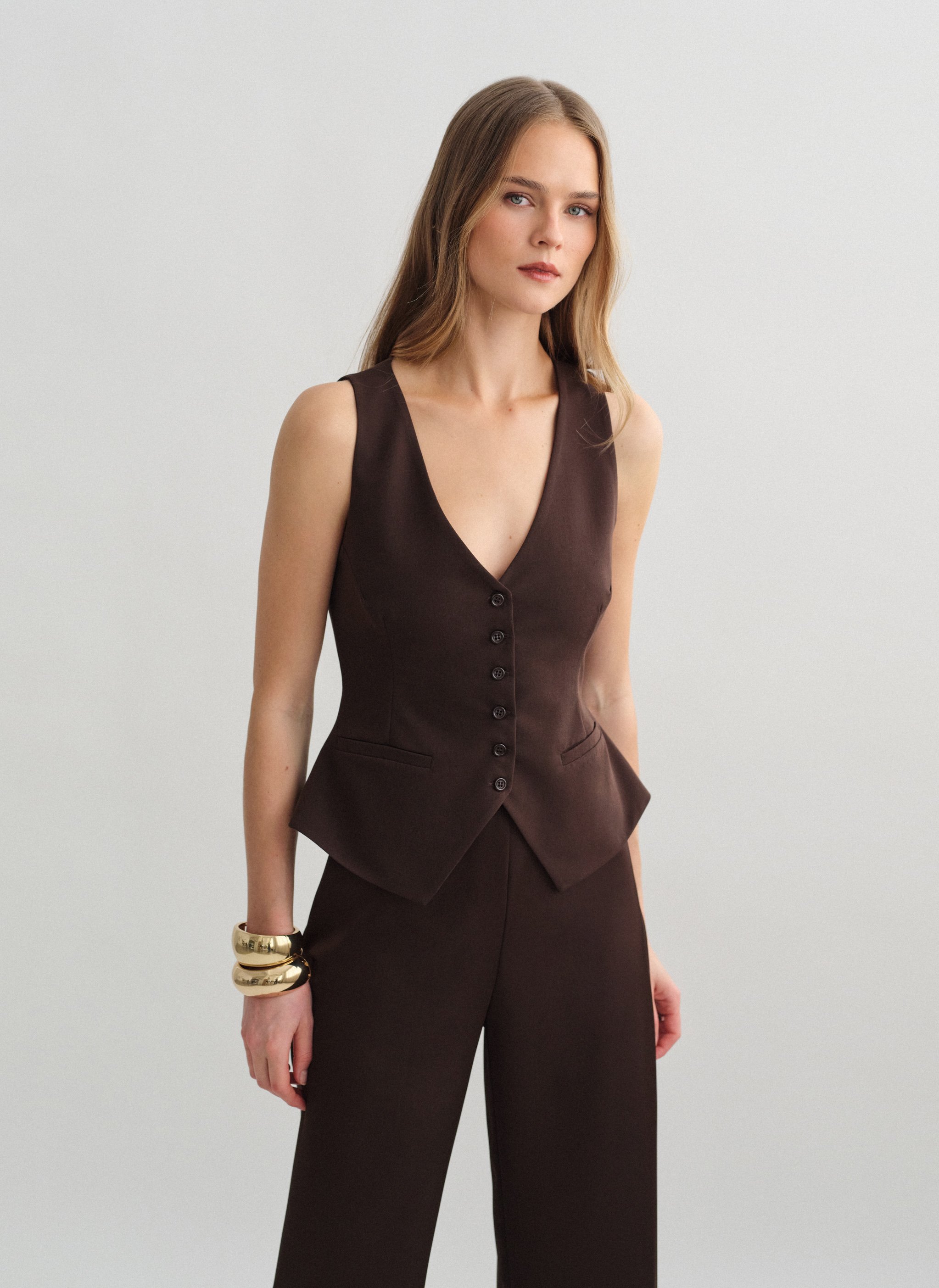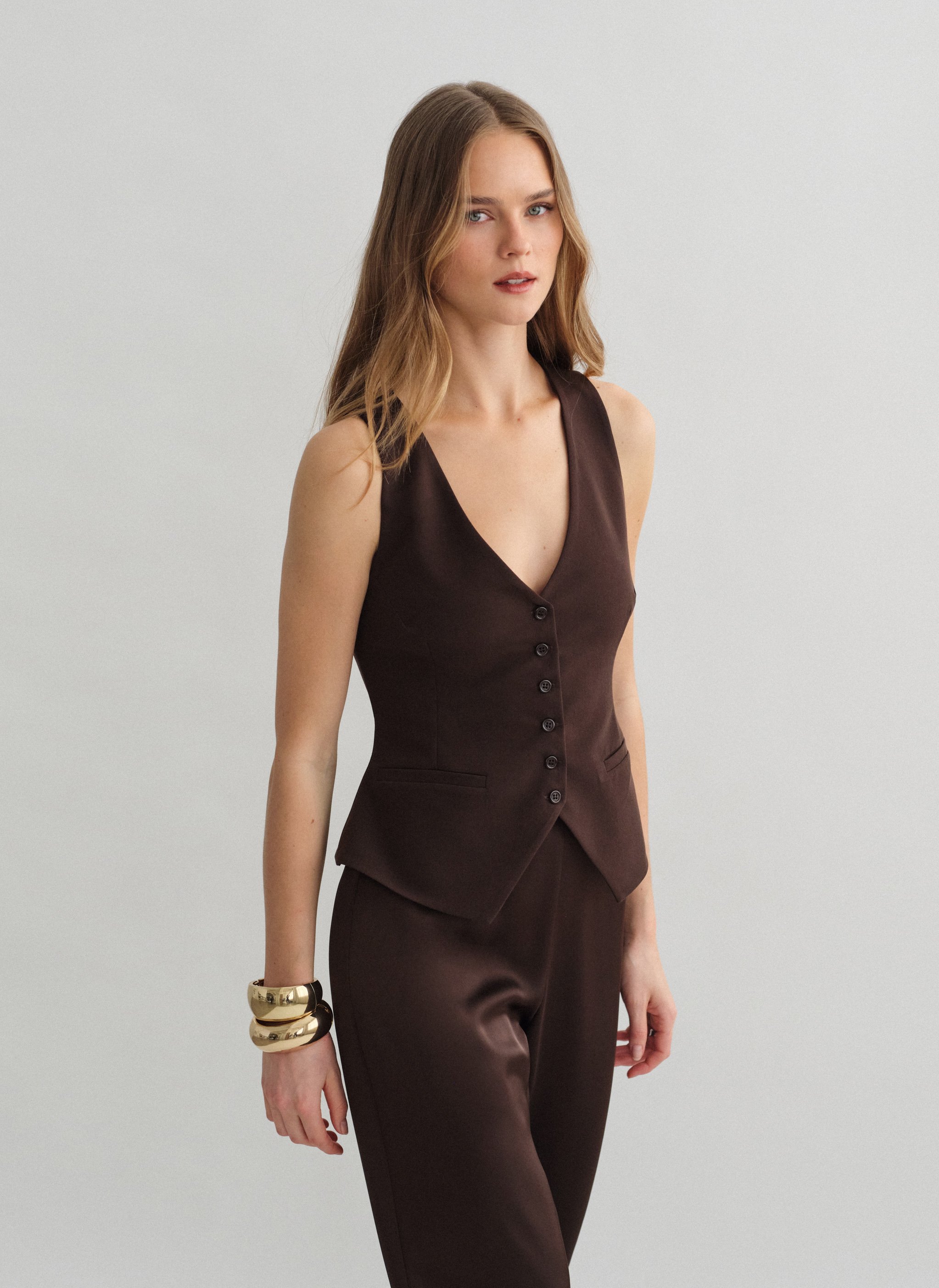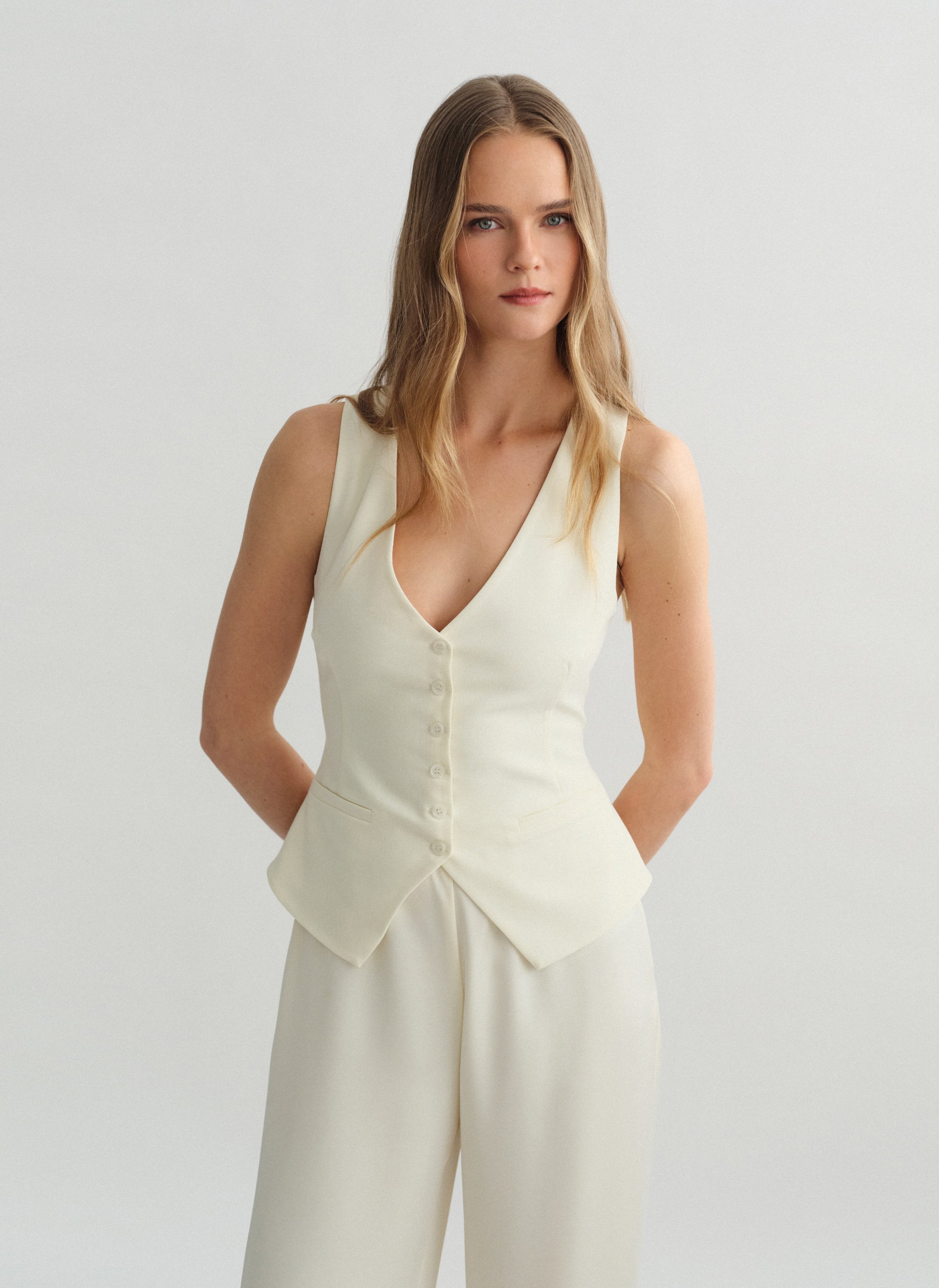 Μεσάτο υφασμάτινο γιλέκο με κουμπιά και δέσιμο στην πλάτη.