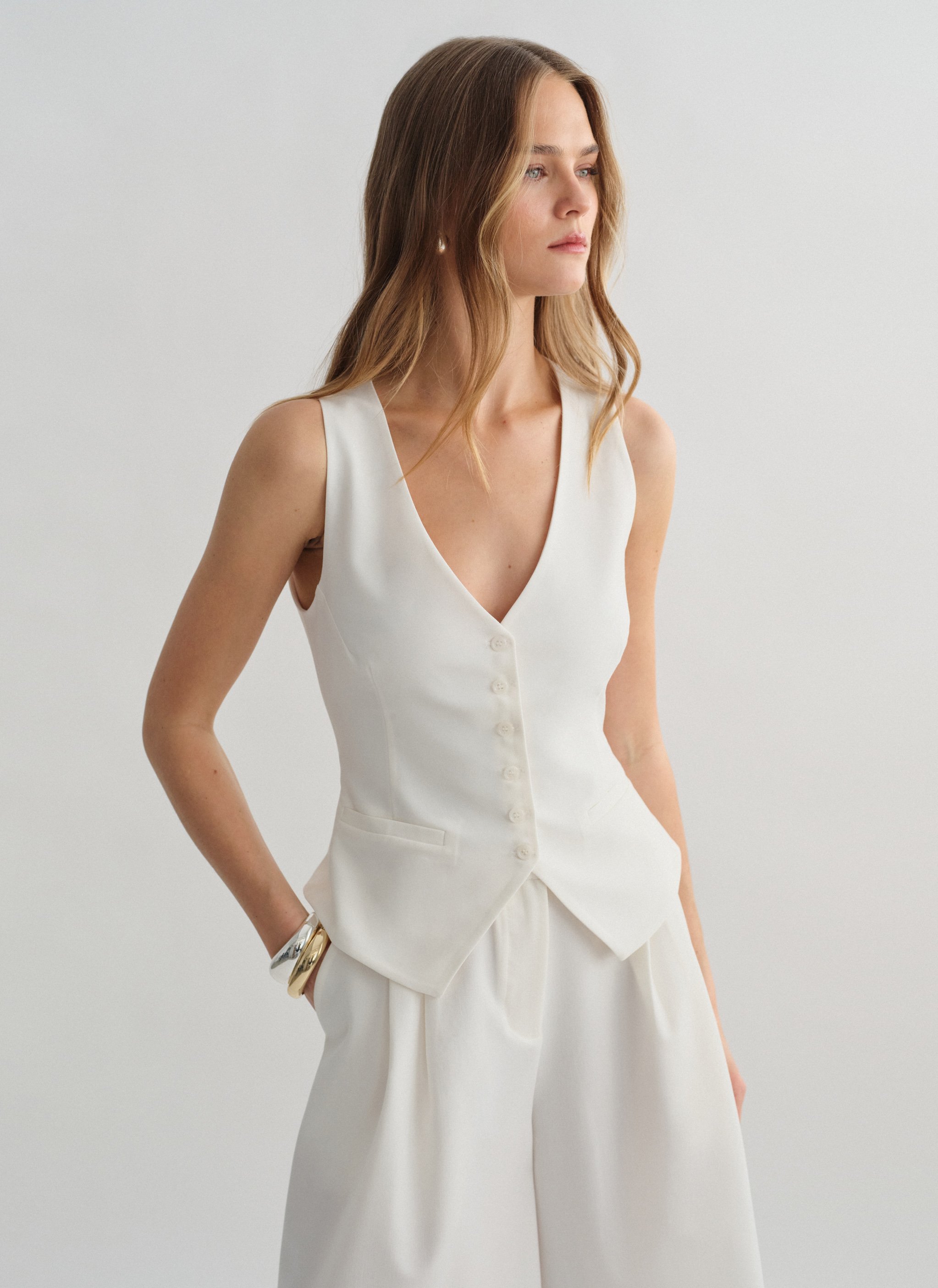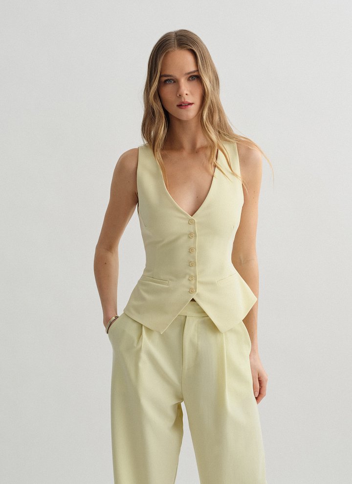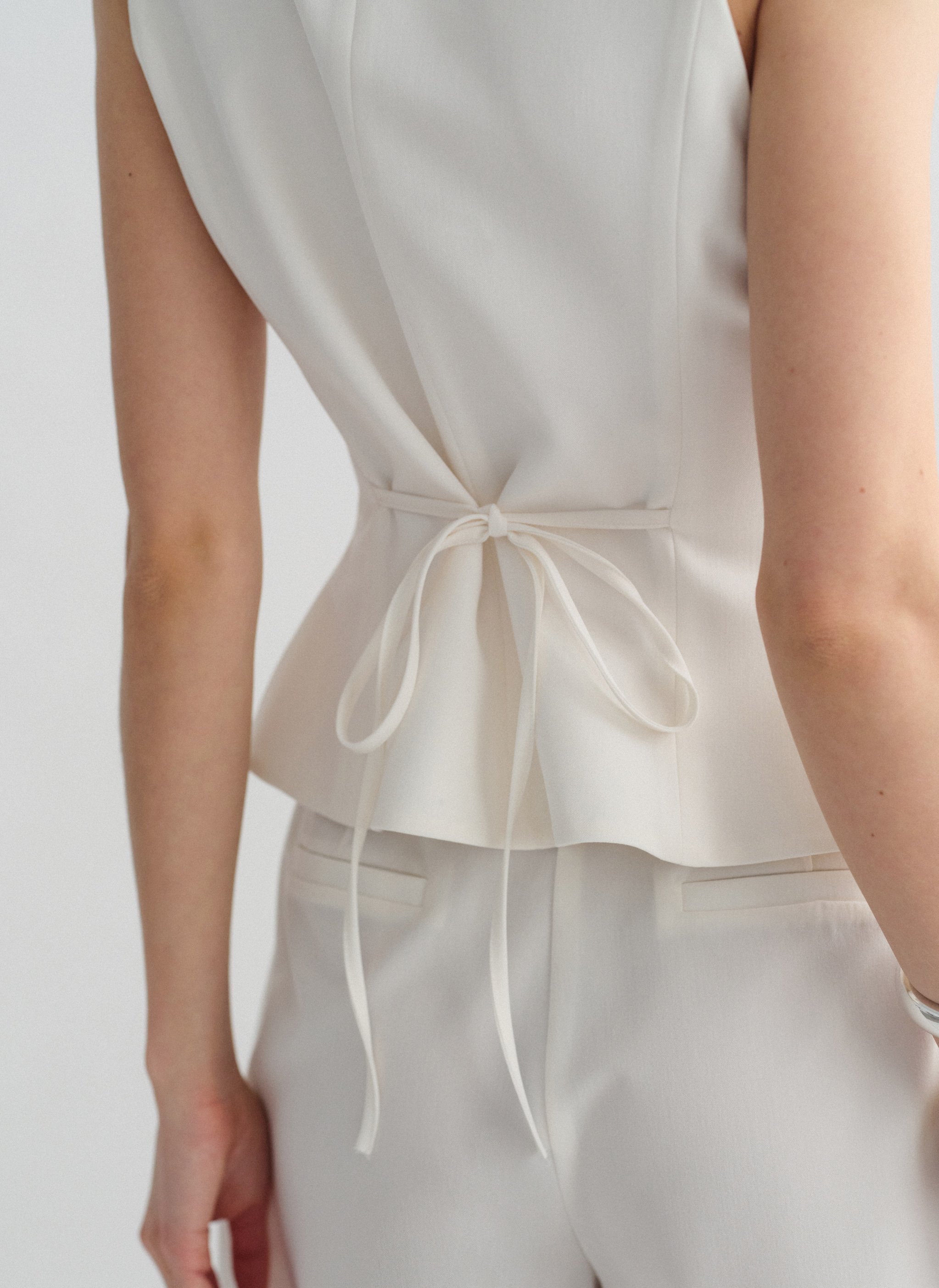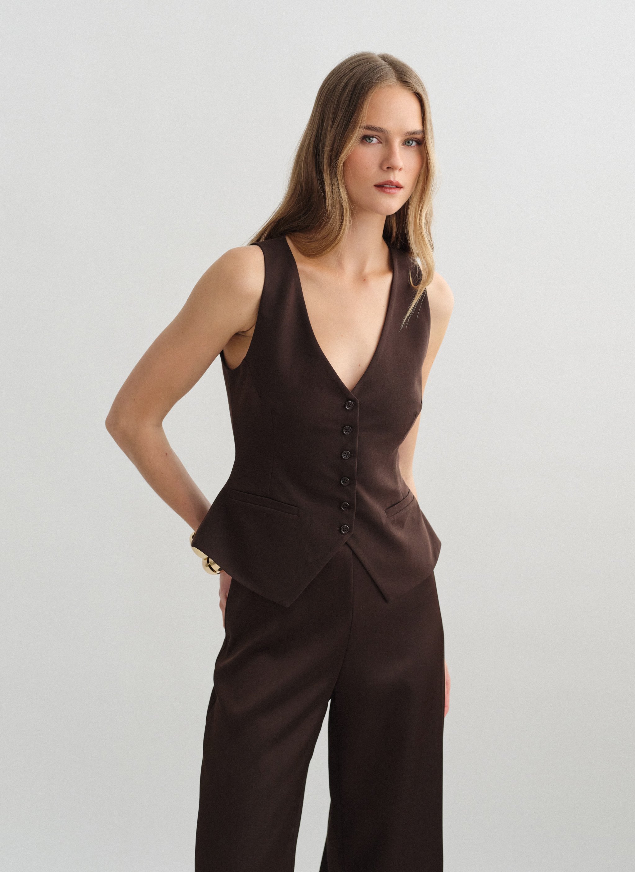 Μεσάτο υφασμάτινο γιλέκο με κουμπιά και δέσιμο στην πλάτη.