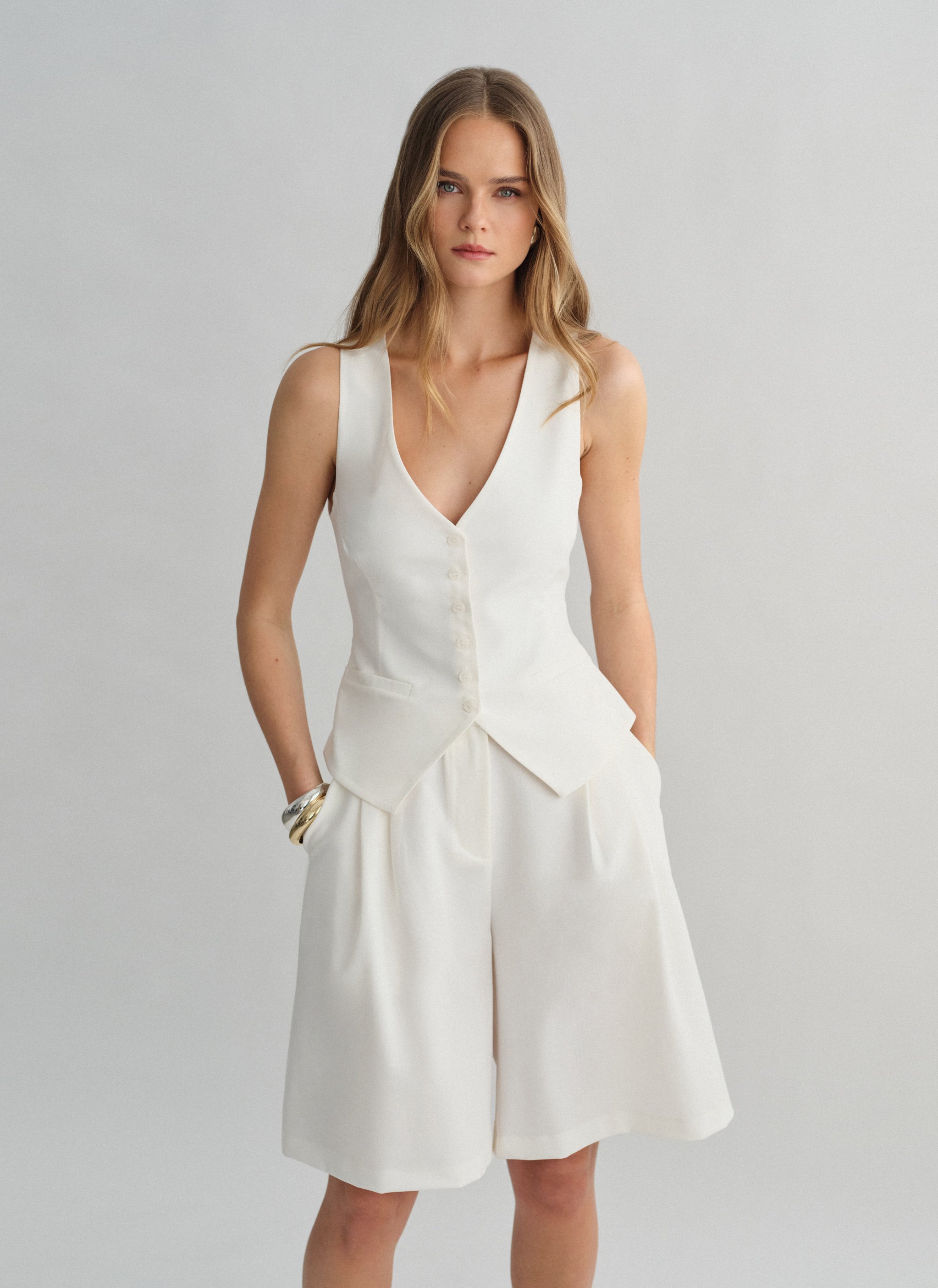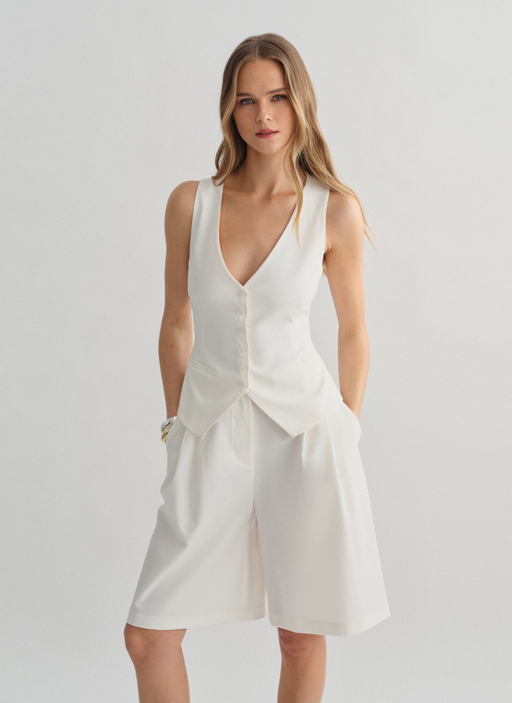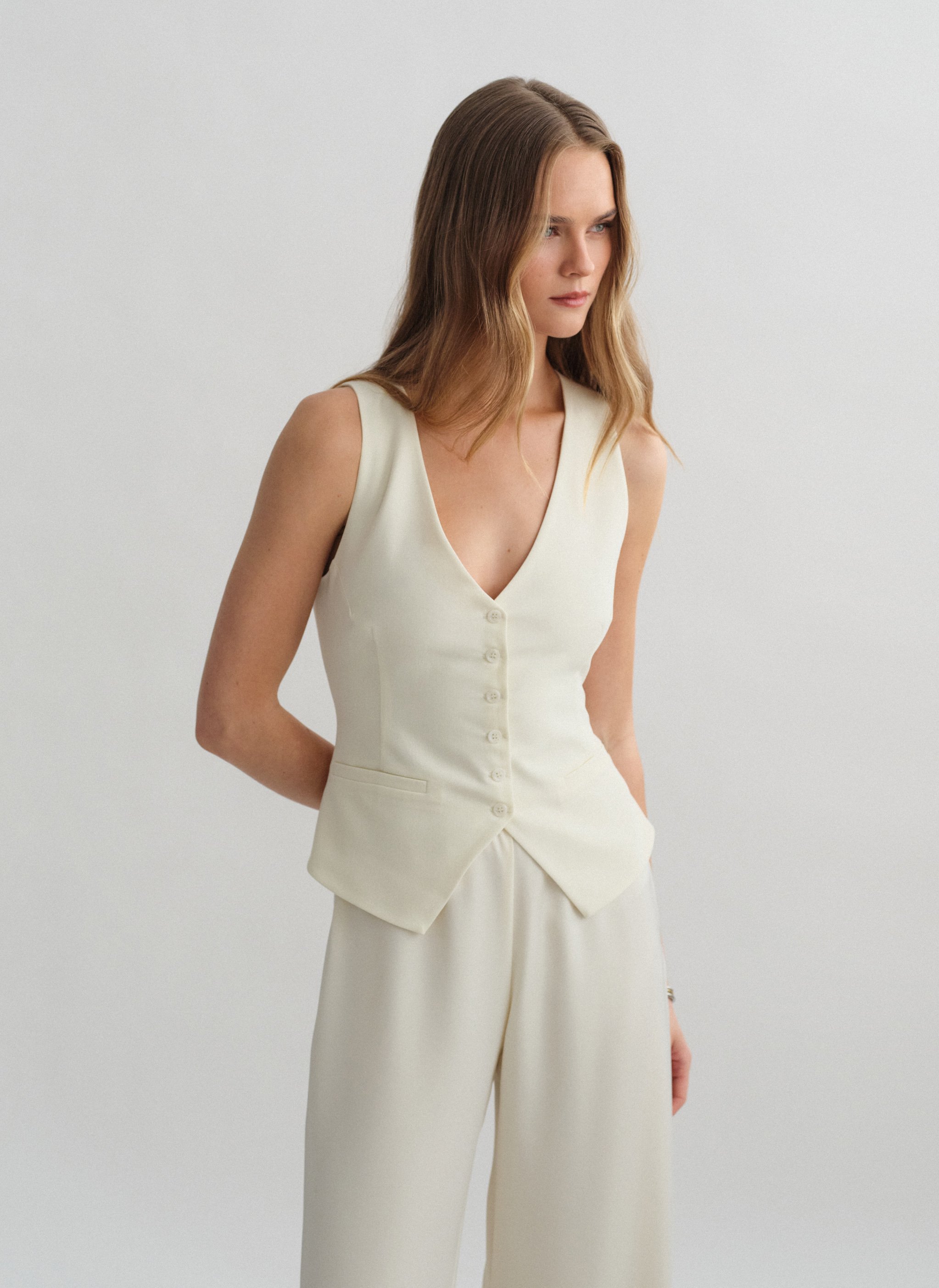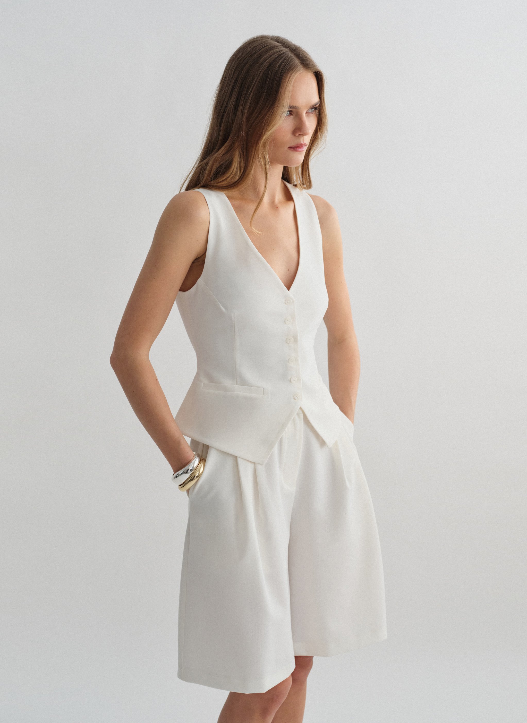 Μεσάτο υφασμάτινο γιλέκο με κουμπιά και δέσιμο στην πλάτη.