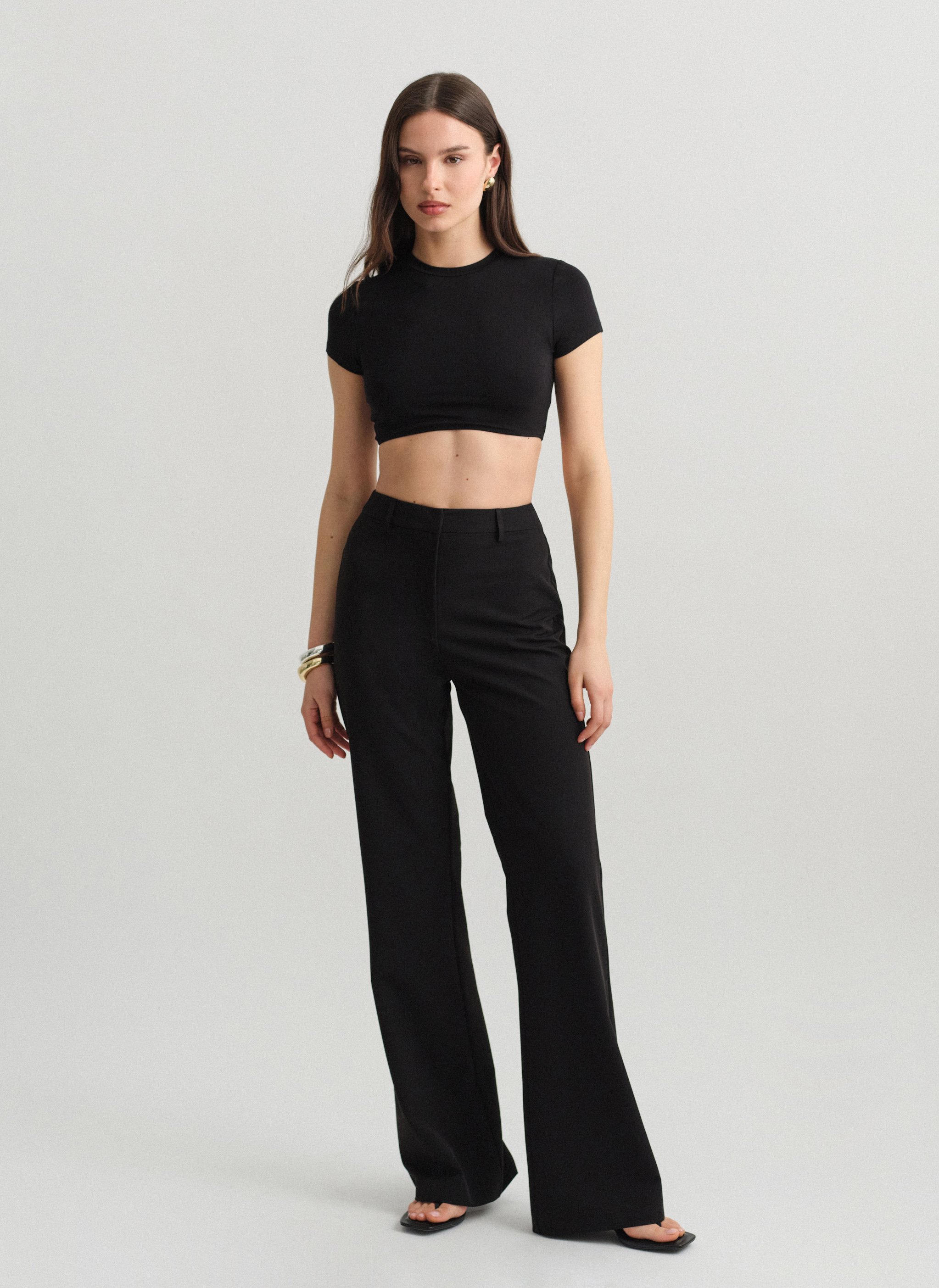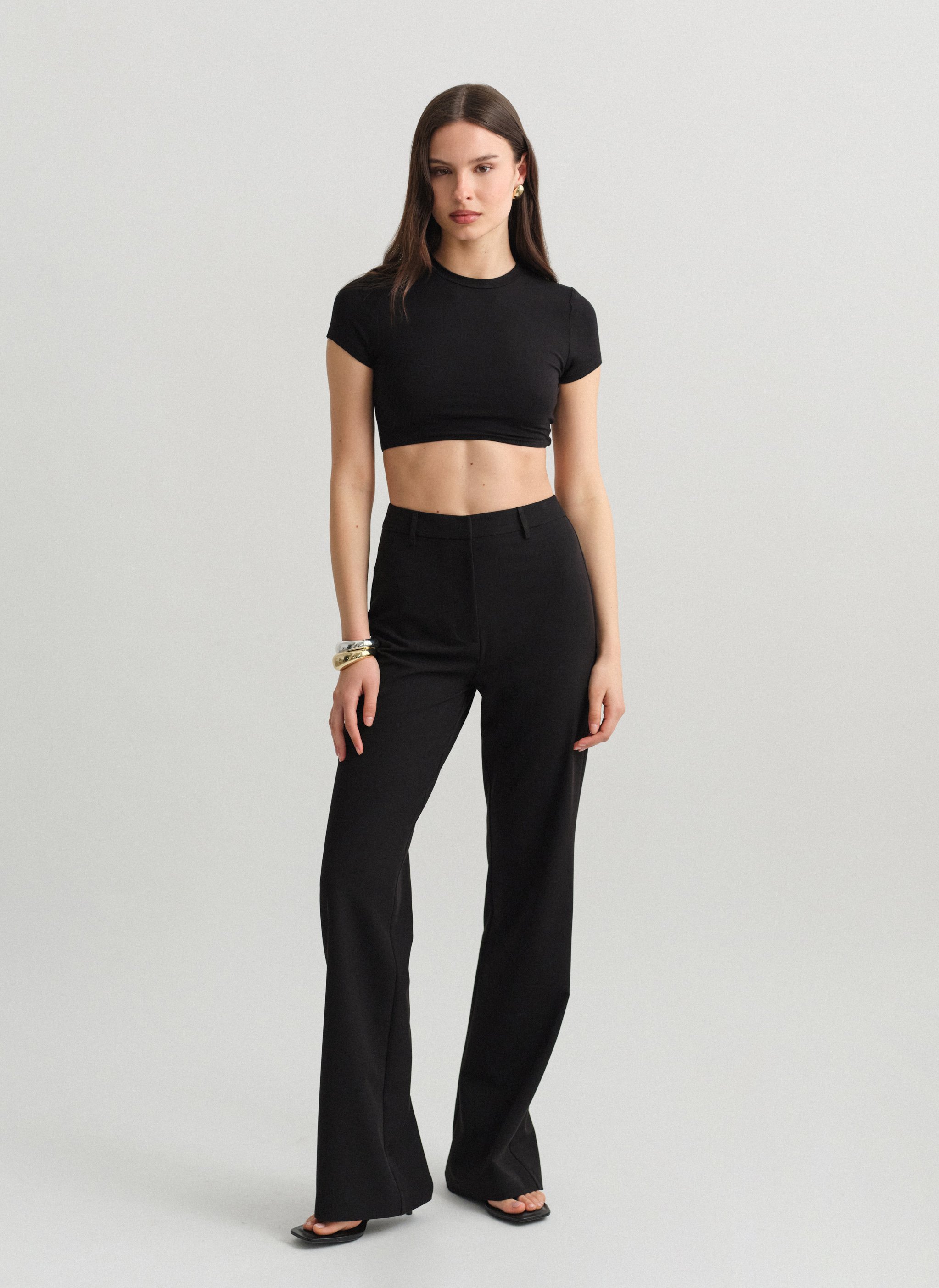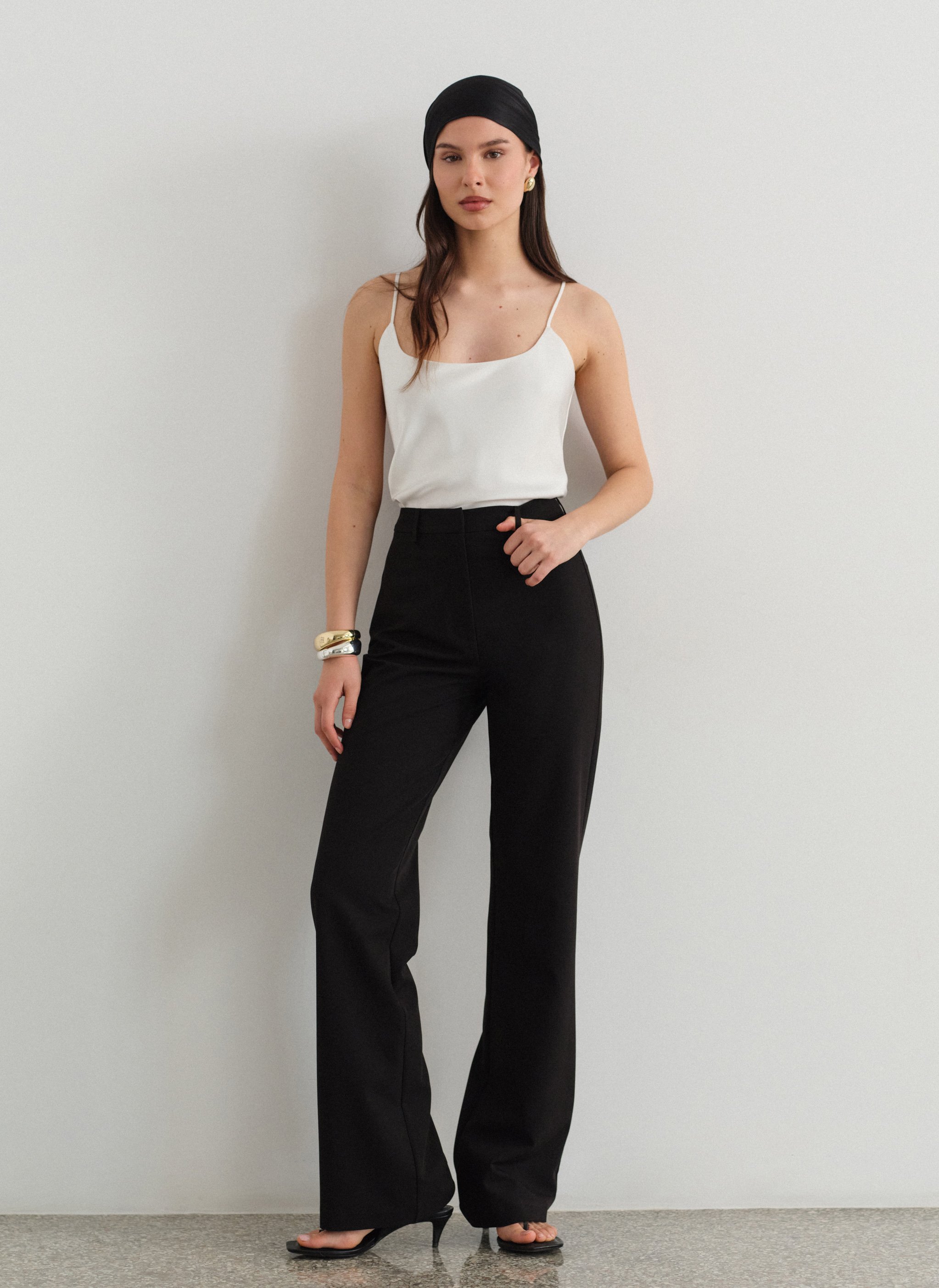 Ψηλόμεσο υφασμάτινο ίσιο παντελόνι.