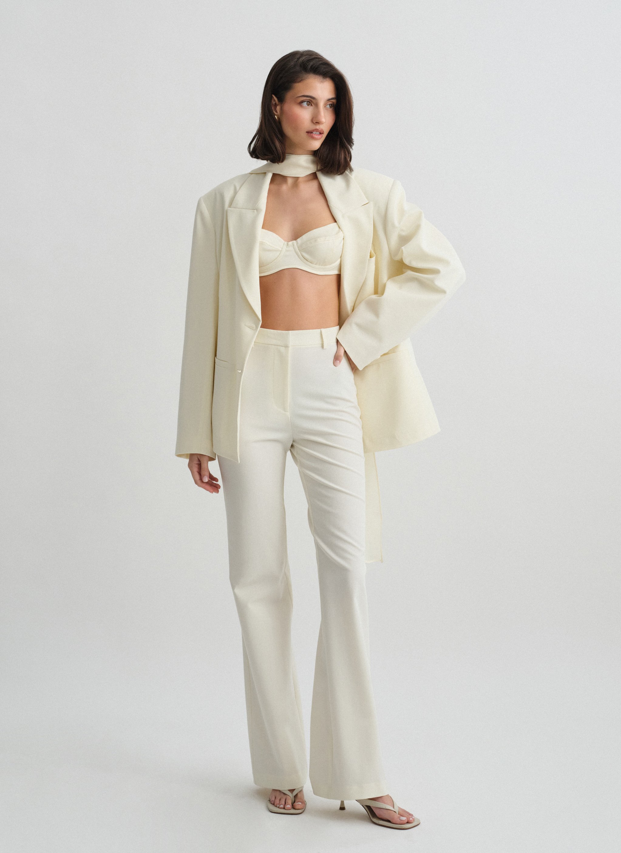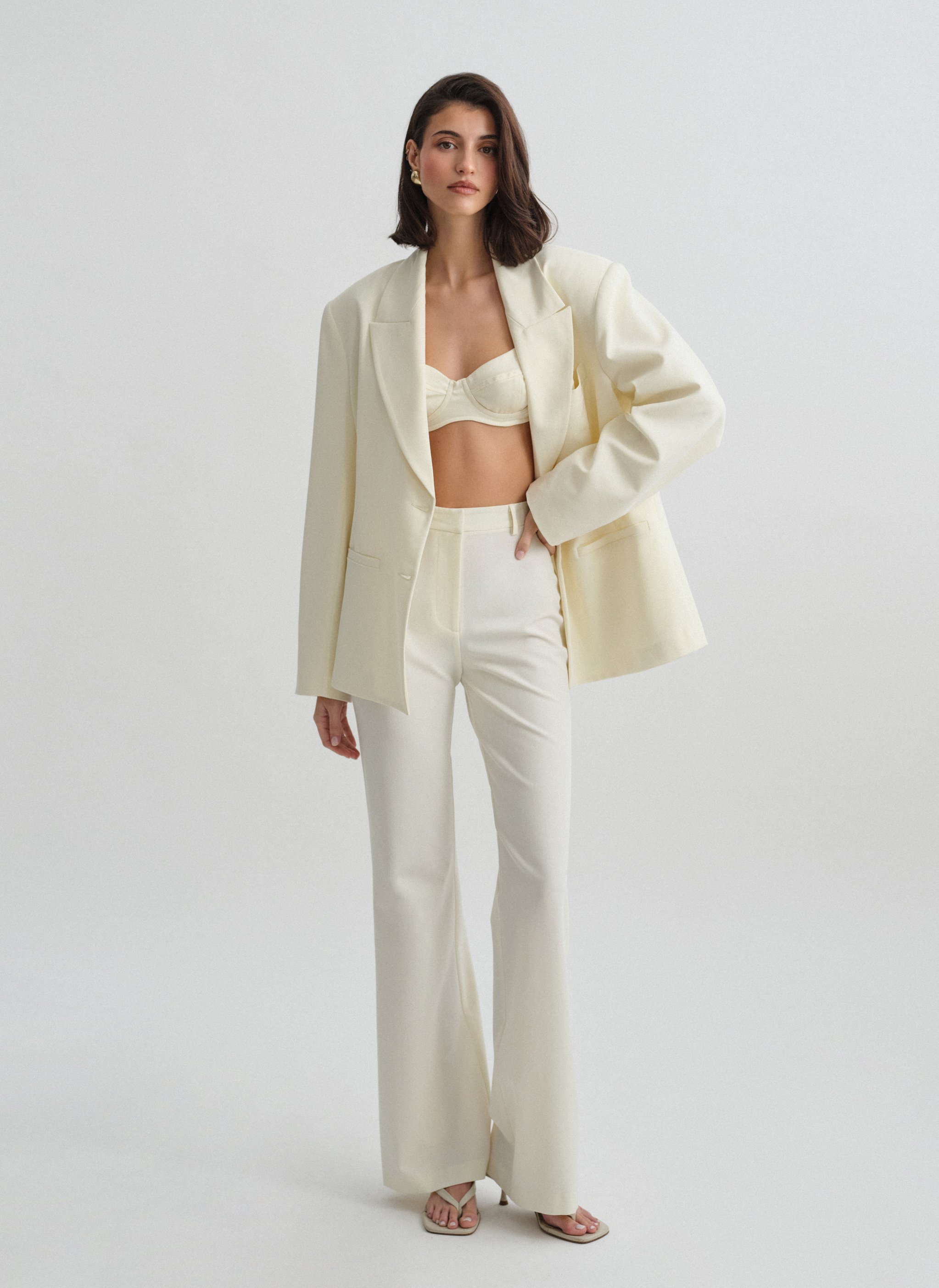 Το προϊόν διαθέτει ίσια γράμμη και κανονική εφαρμογή, με θηλάκια ζώνης και κλείσιμο με φερμουάρ, κουμπί και κόπιτσα.