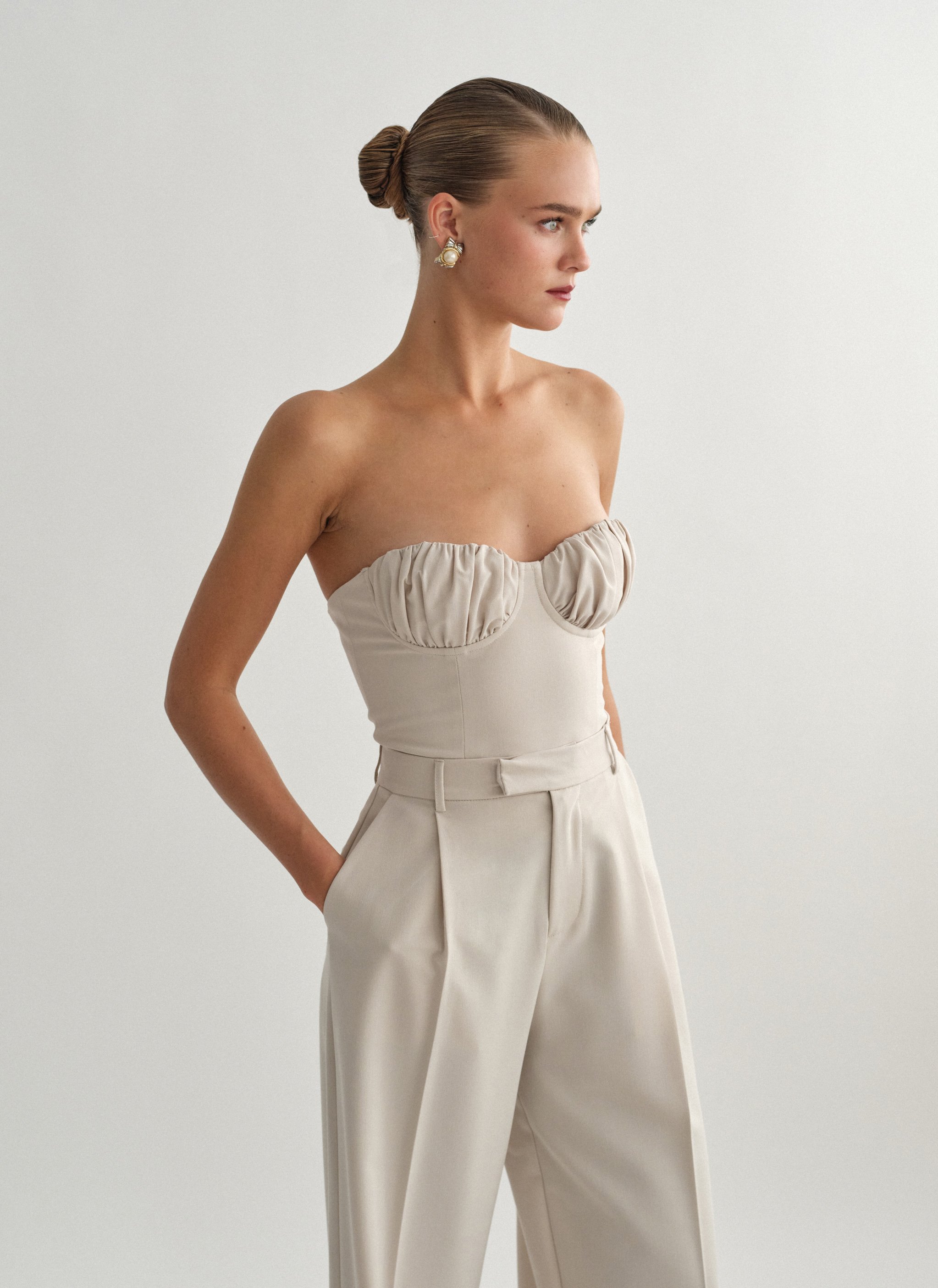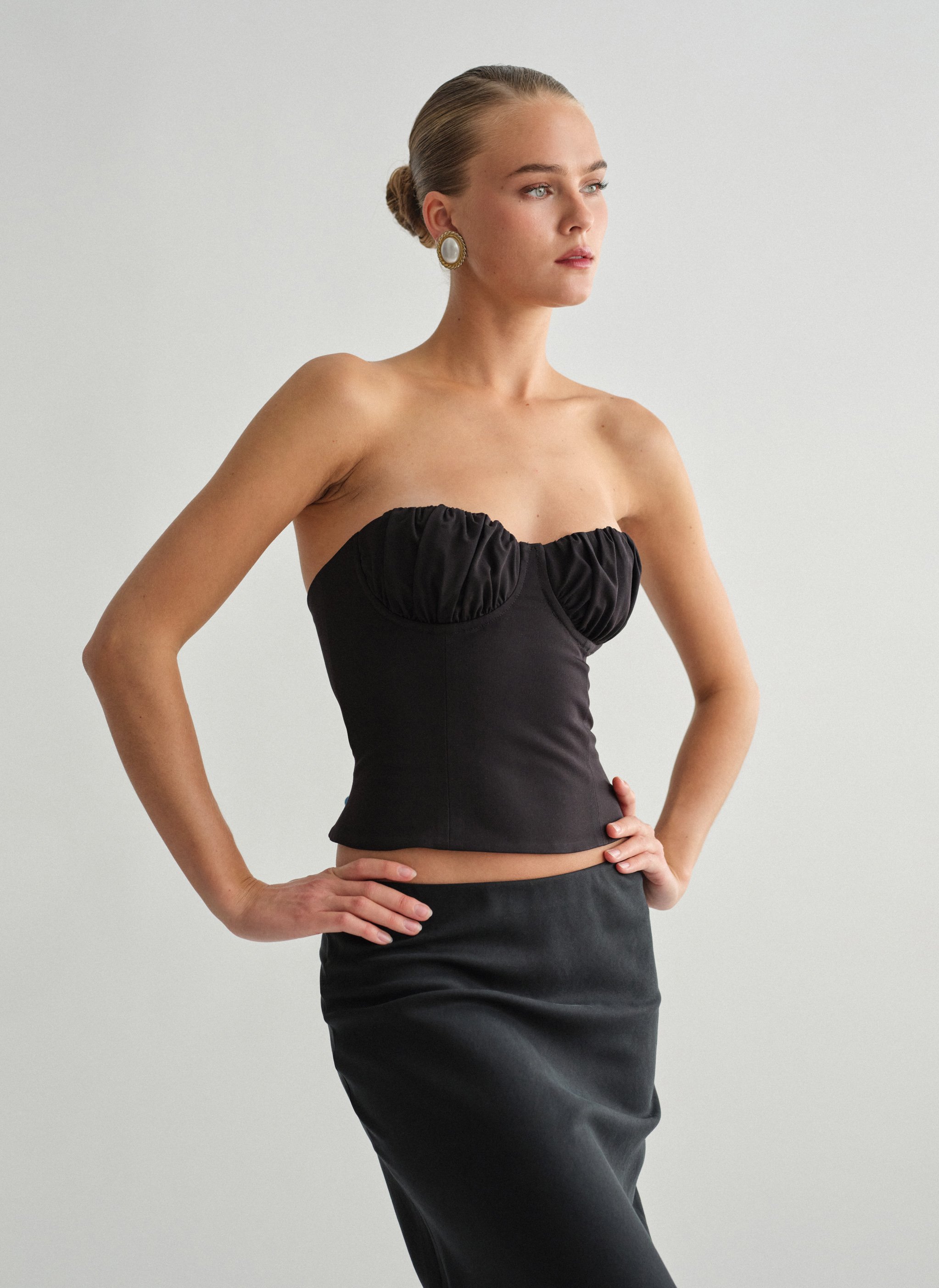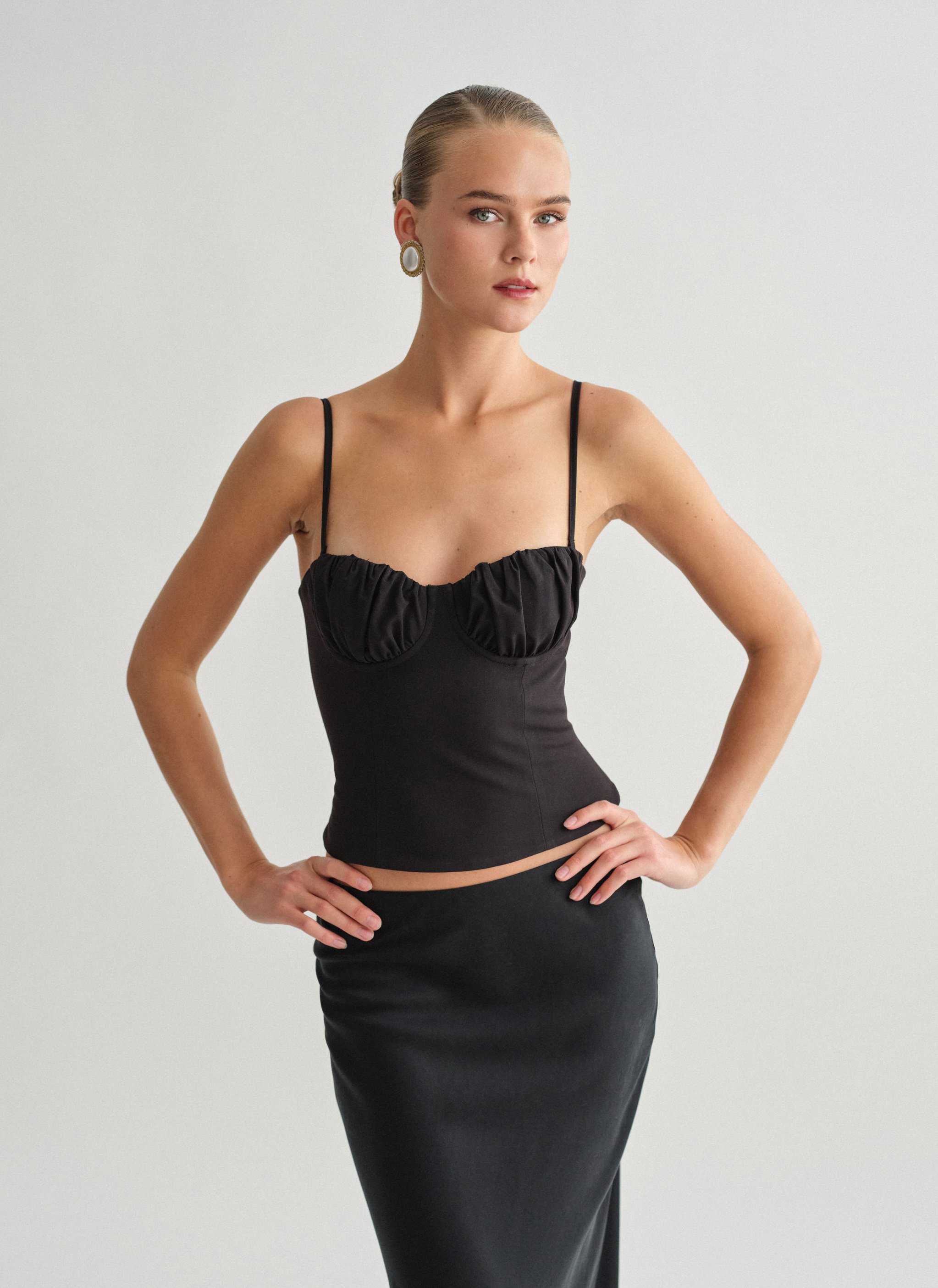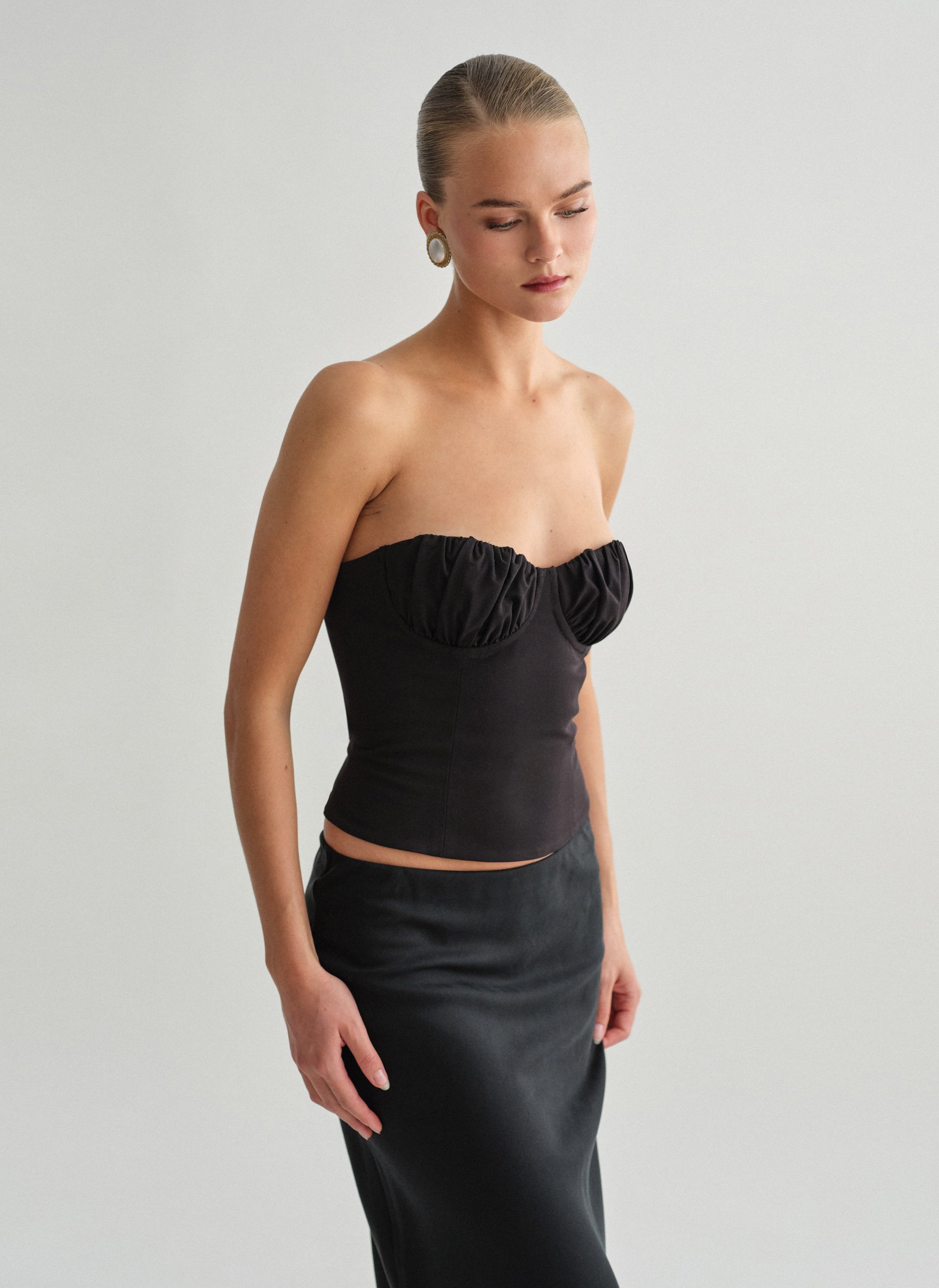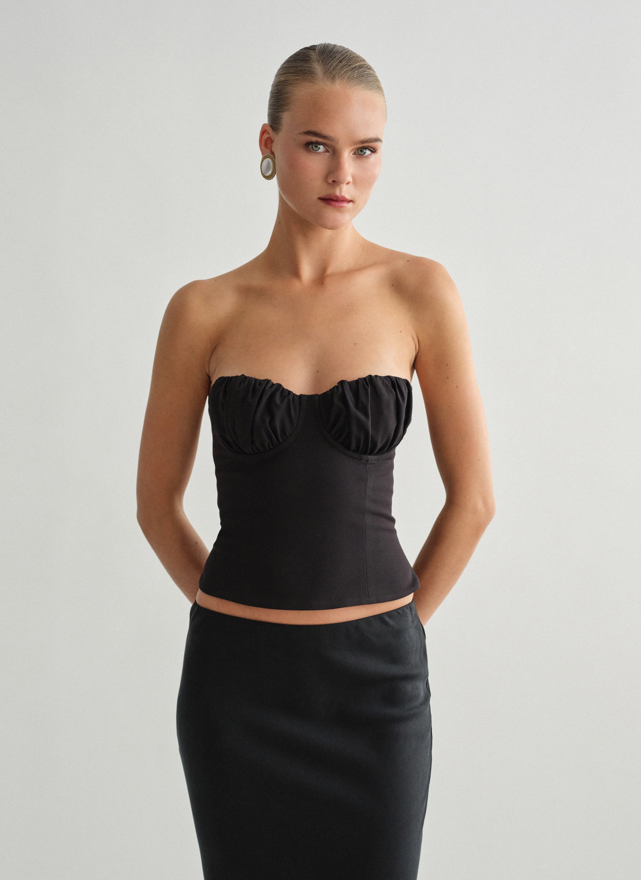 Υφασμάτινο κορσέ τοπ με λεπτομέρεια σούρες και αποσπώμενες τιράντες.