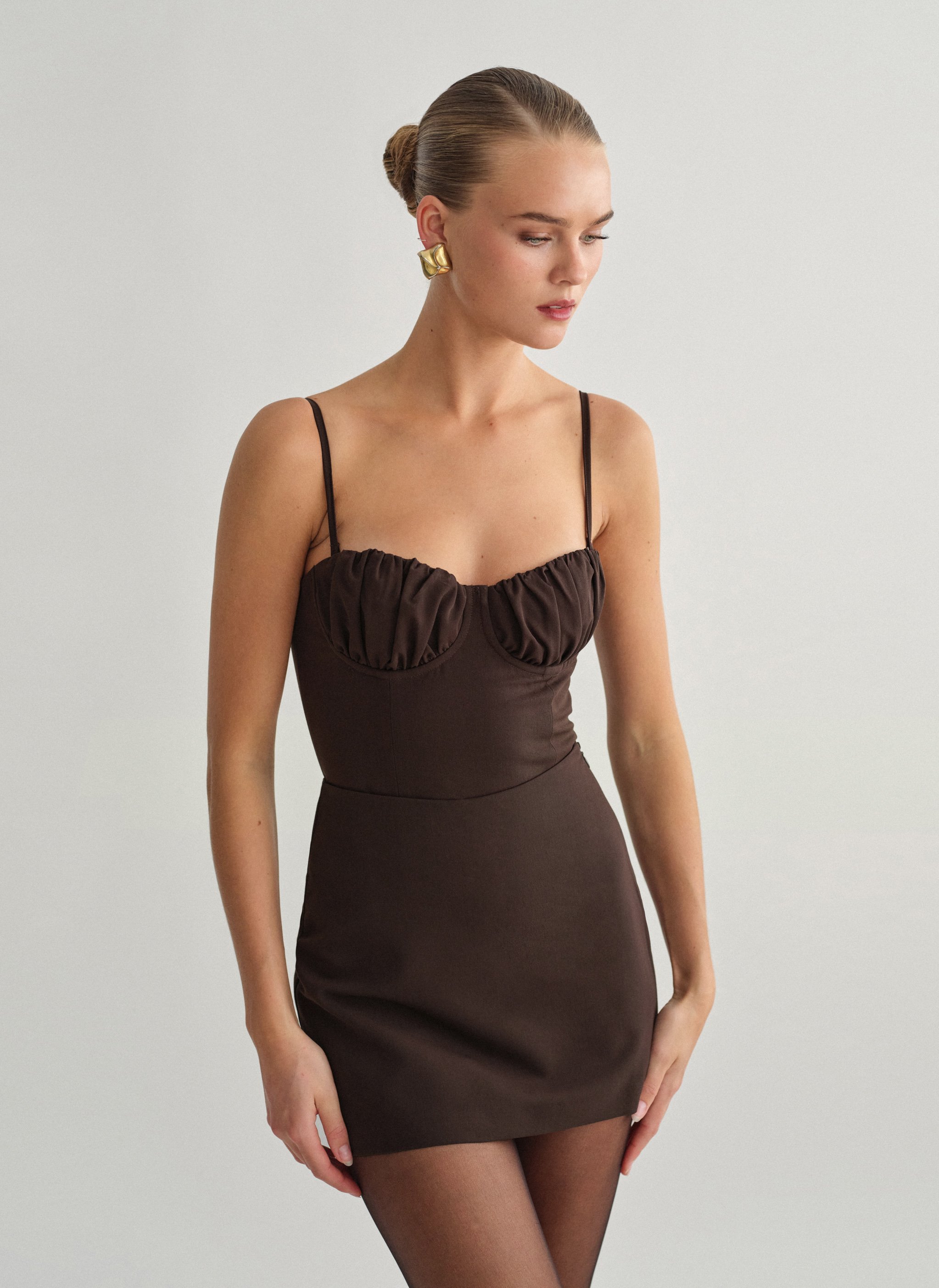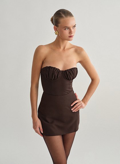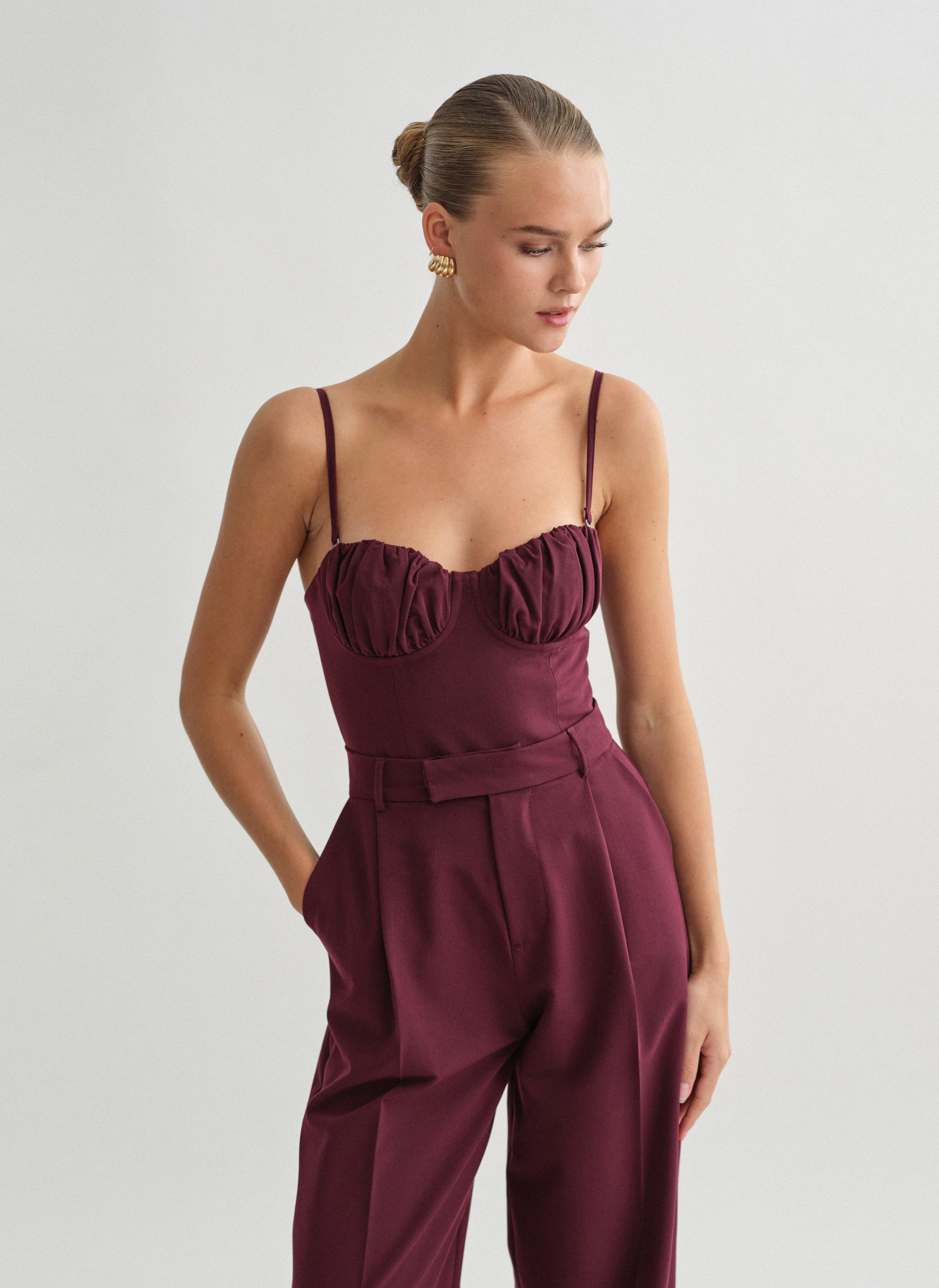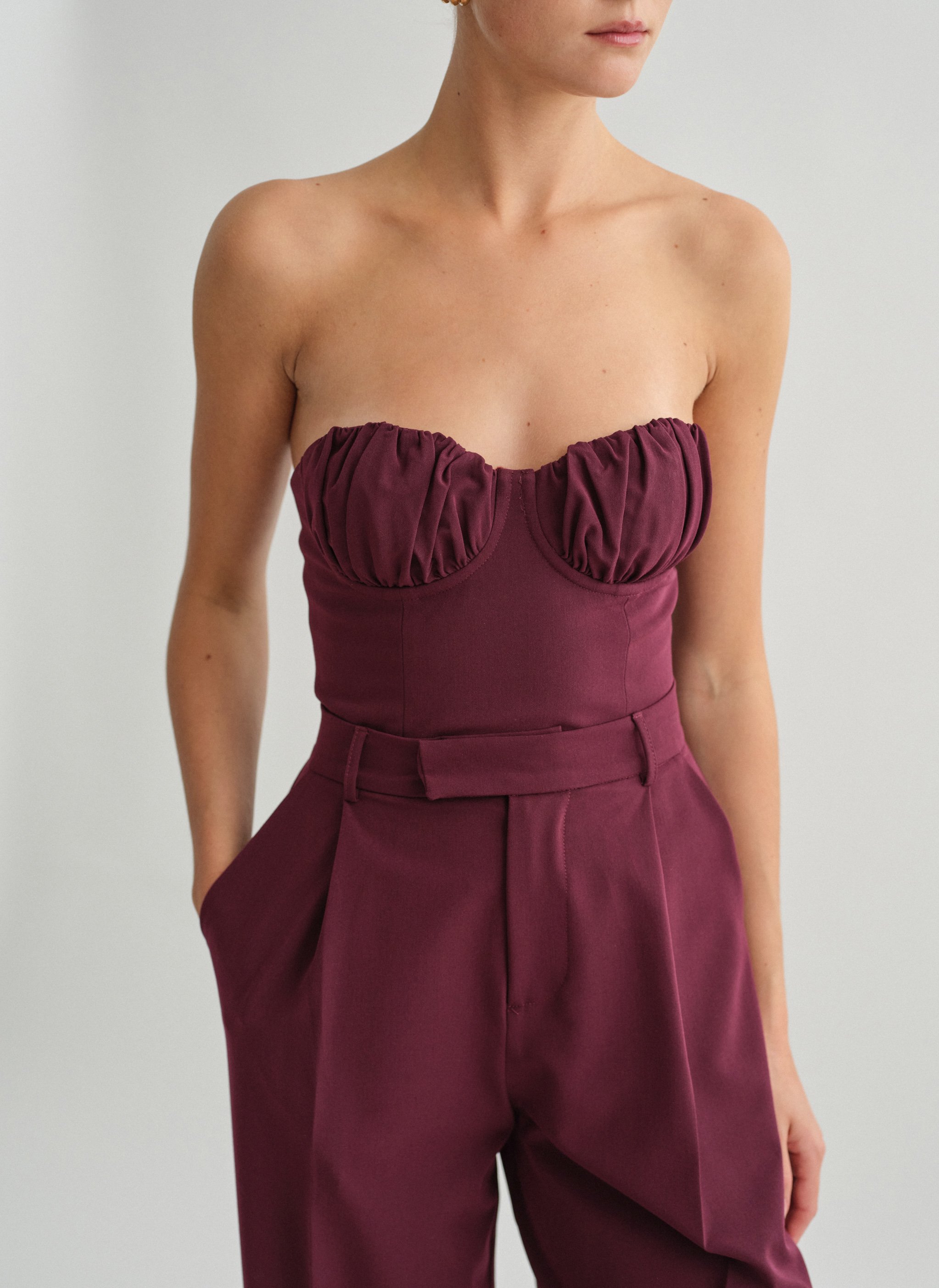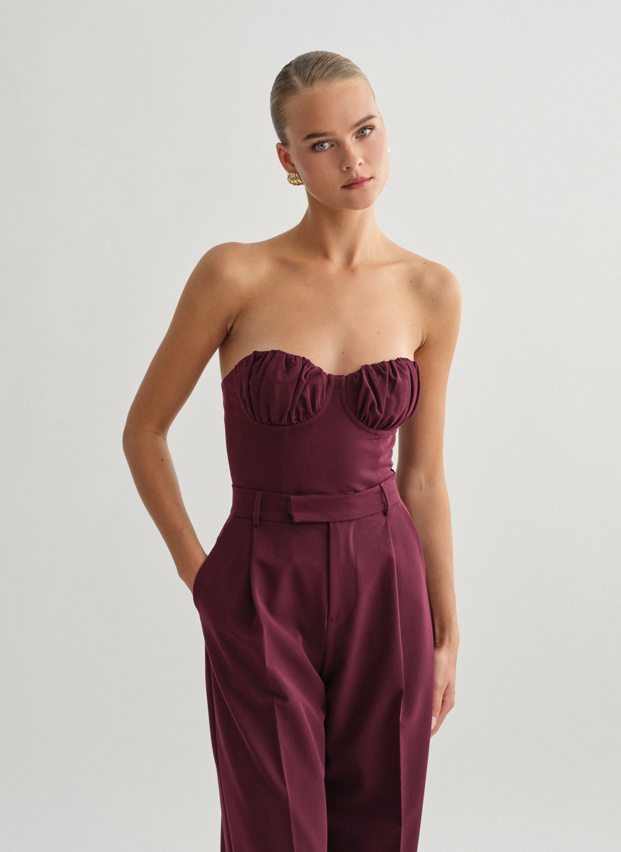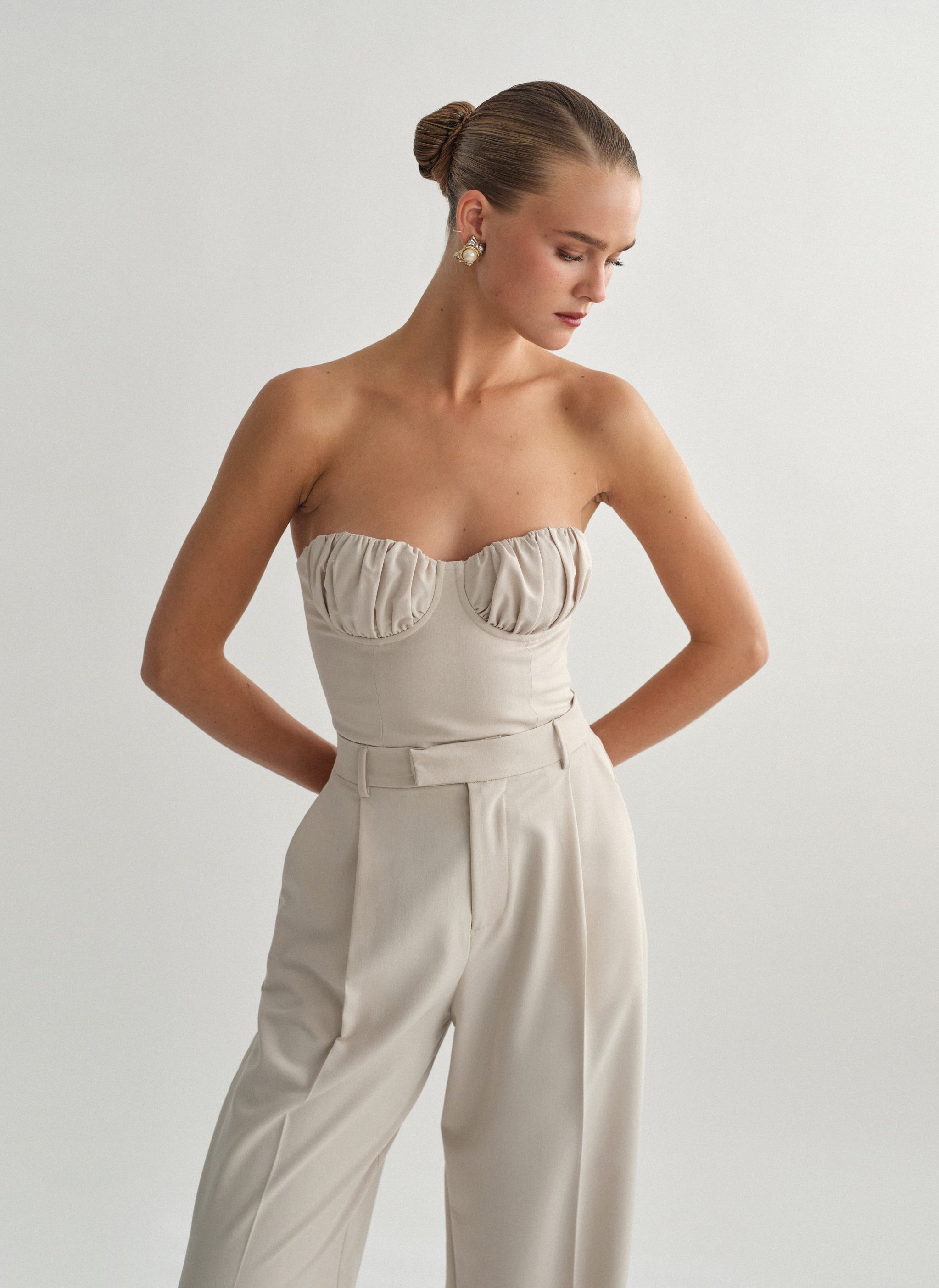 Υφασμάτινο κορσέ τοπ με λεπτομέρεια σούρες και αποσπώμενες τιράντες.