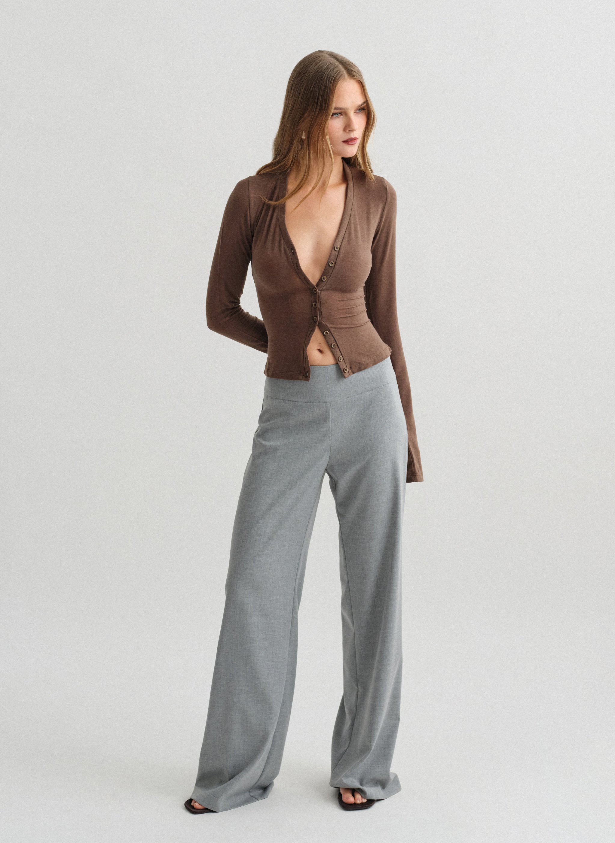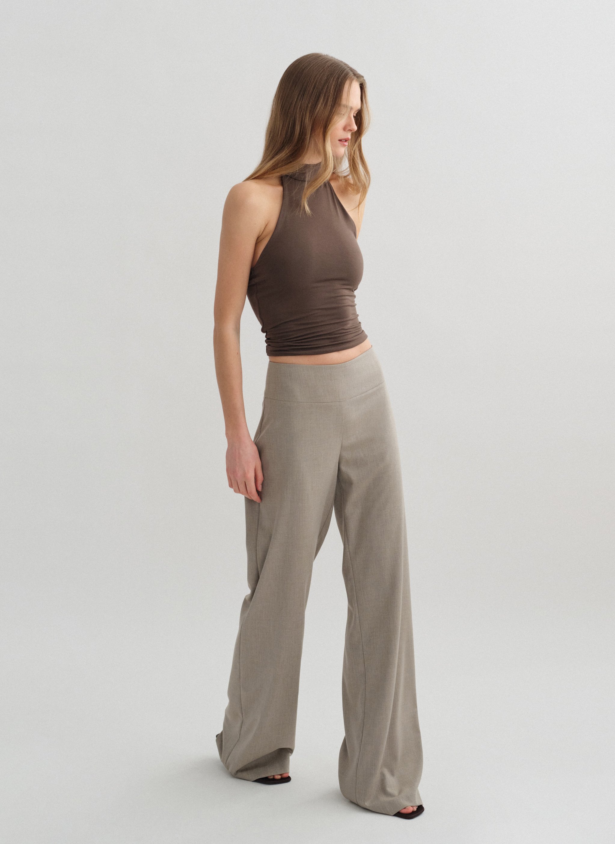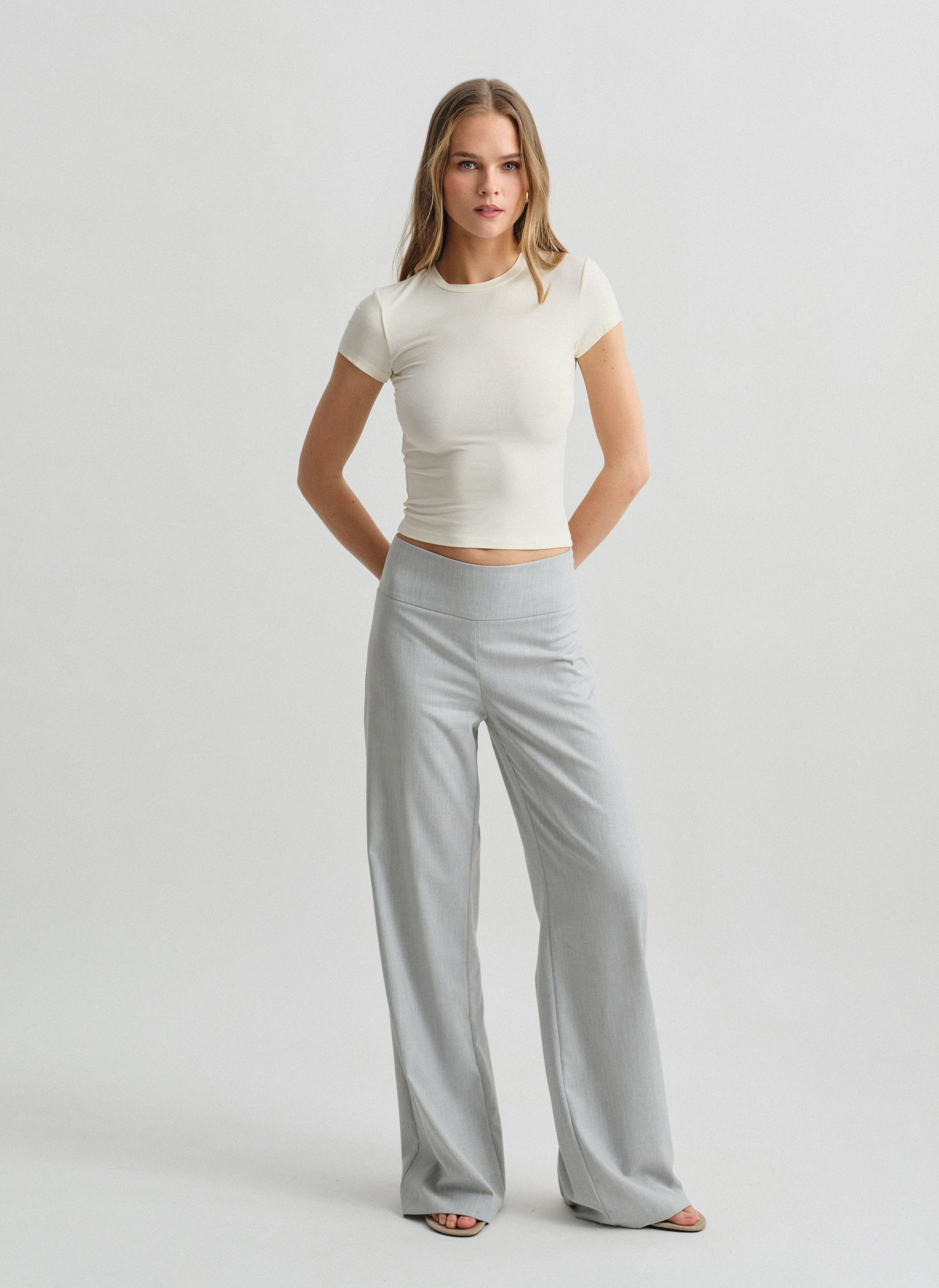 Υφασμάτινο mid-rise παντελόνι με φαρδύ ζωνάκι.
