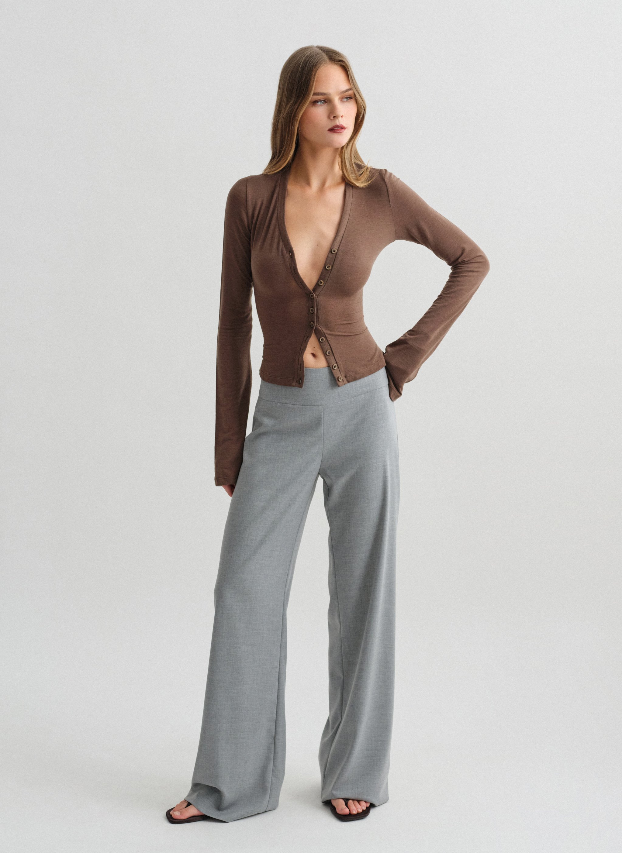 Το προϊόν διαθέτει κανονική εφαρμογή, με ίσιο ριχτό μπατζάκι και κλείσιμο με κρυφό φερμουάρ στο πλάι.