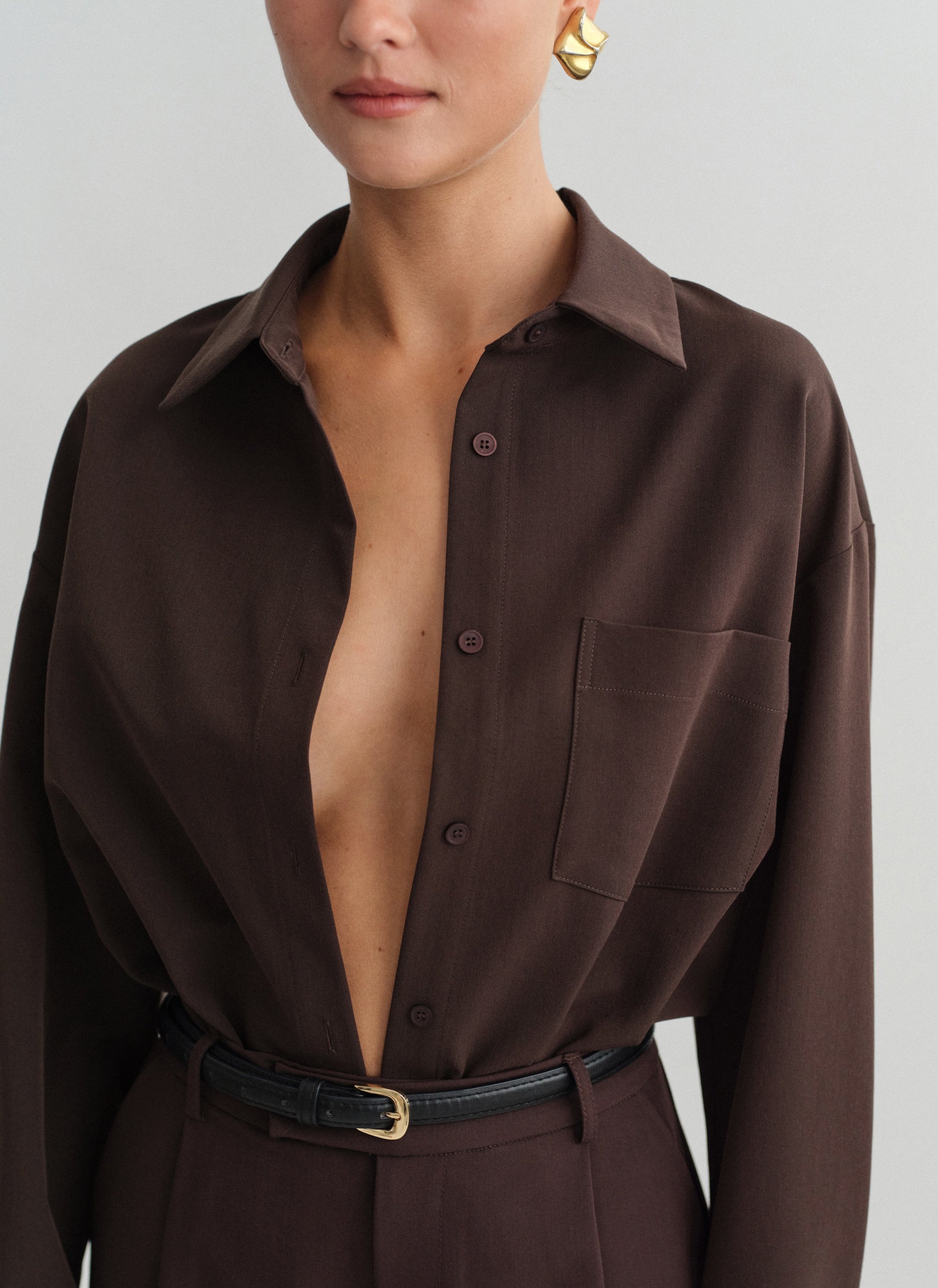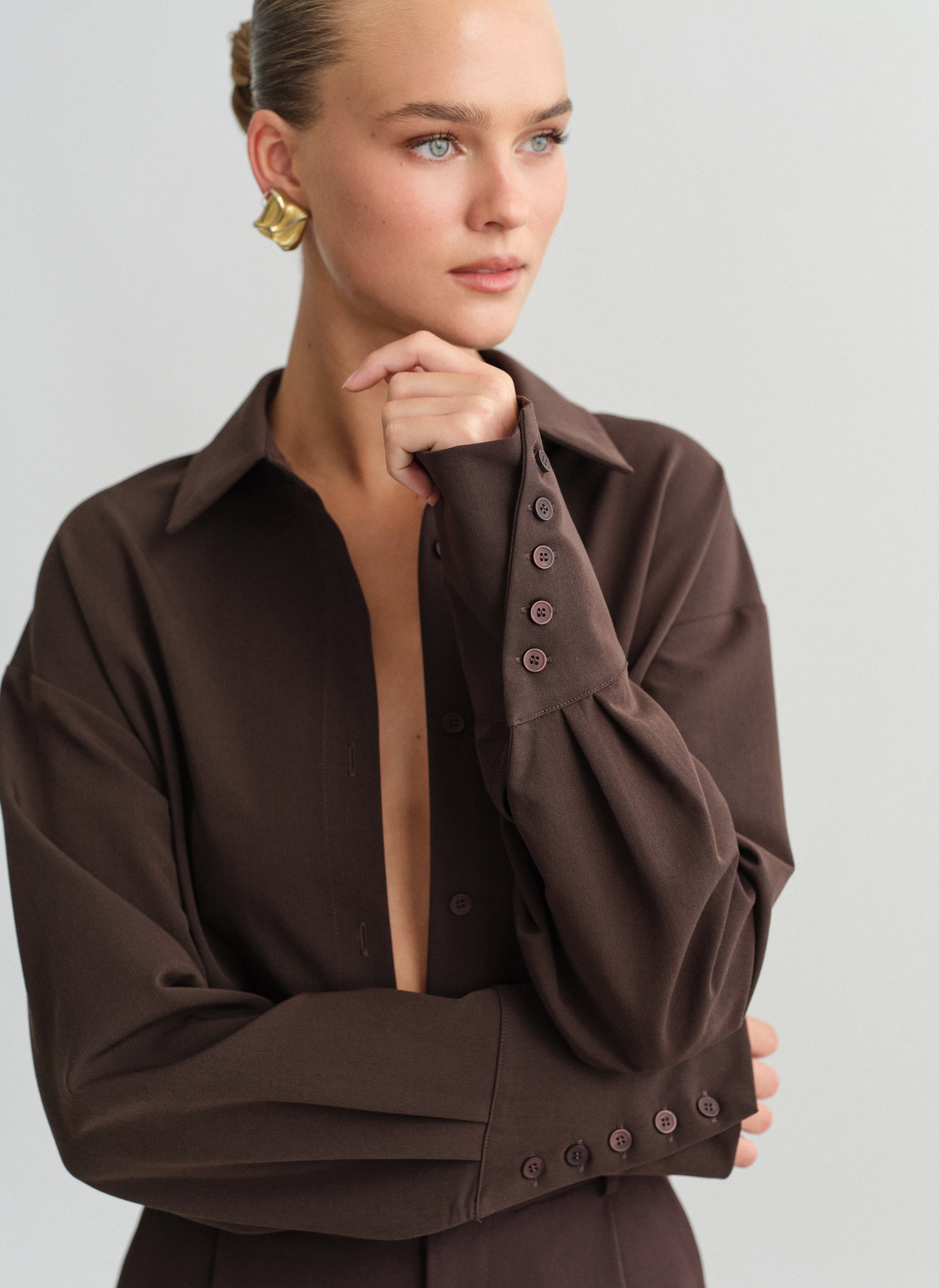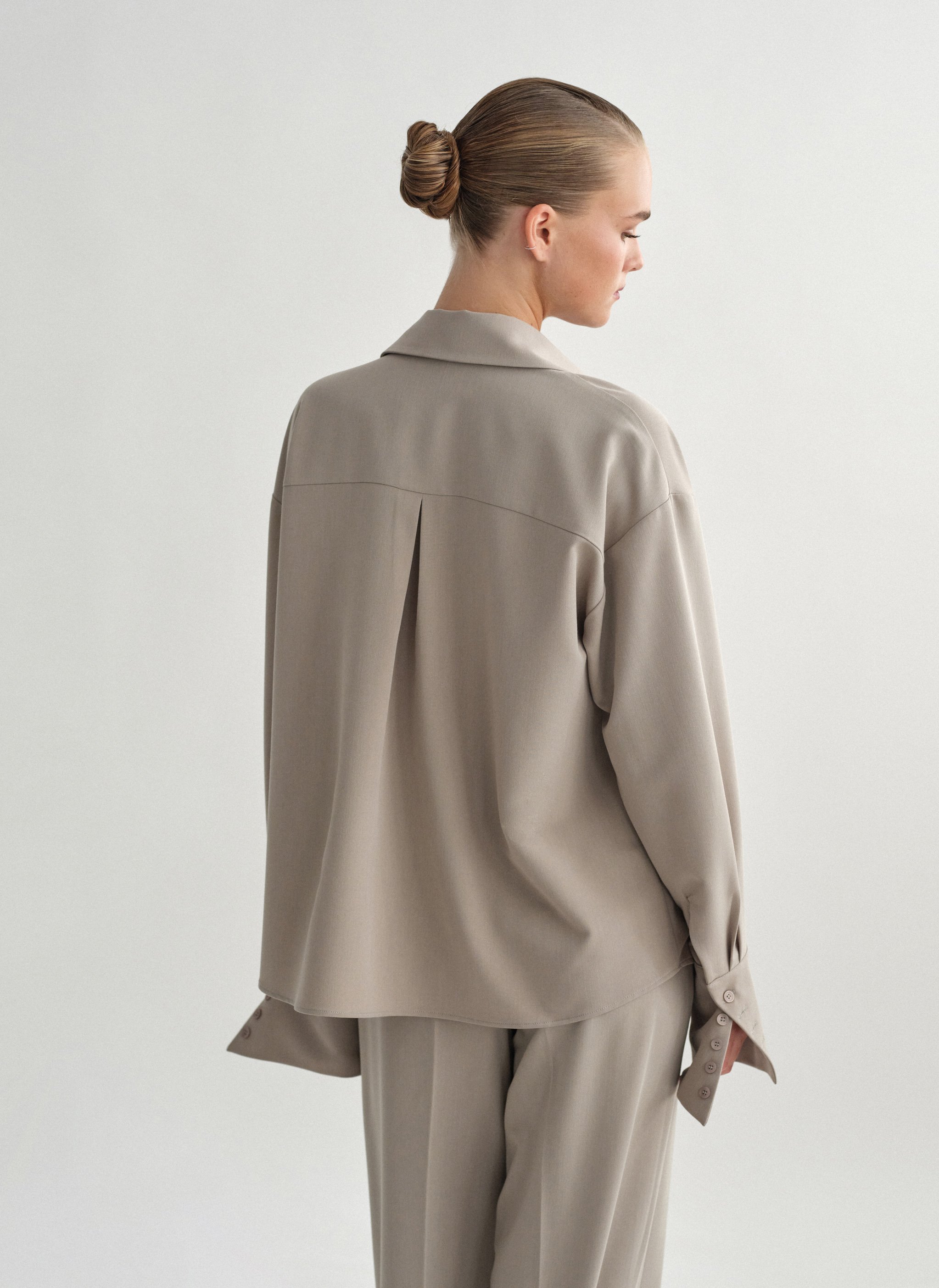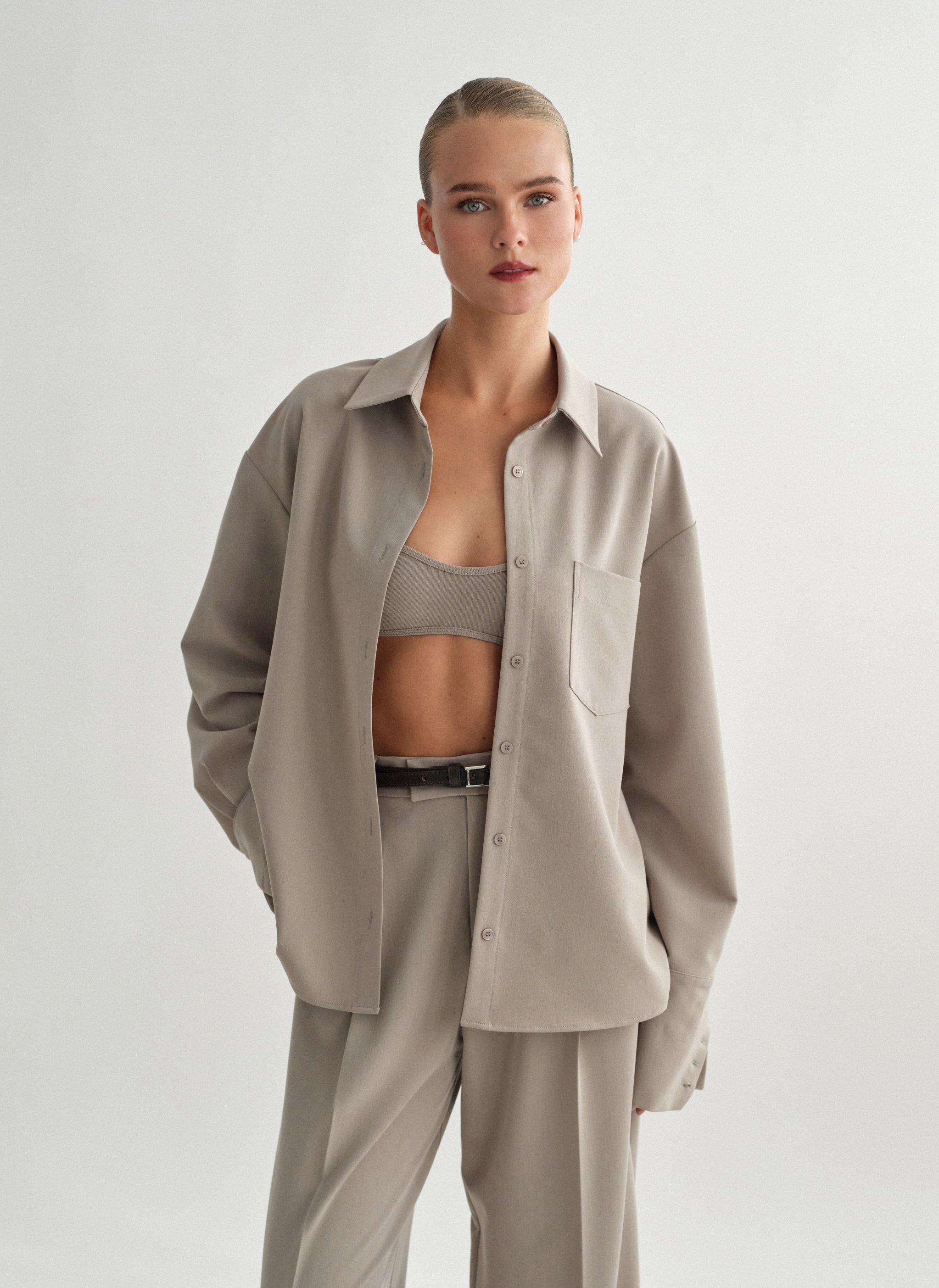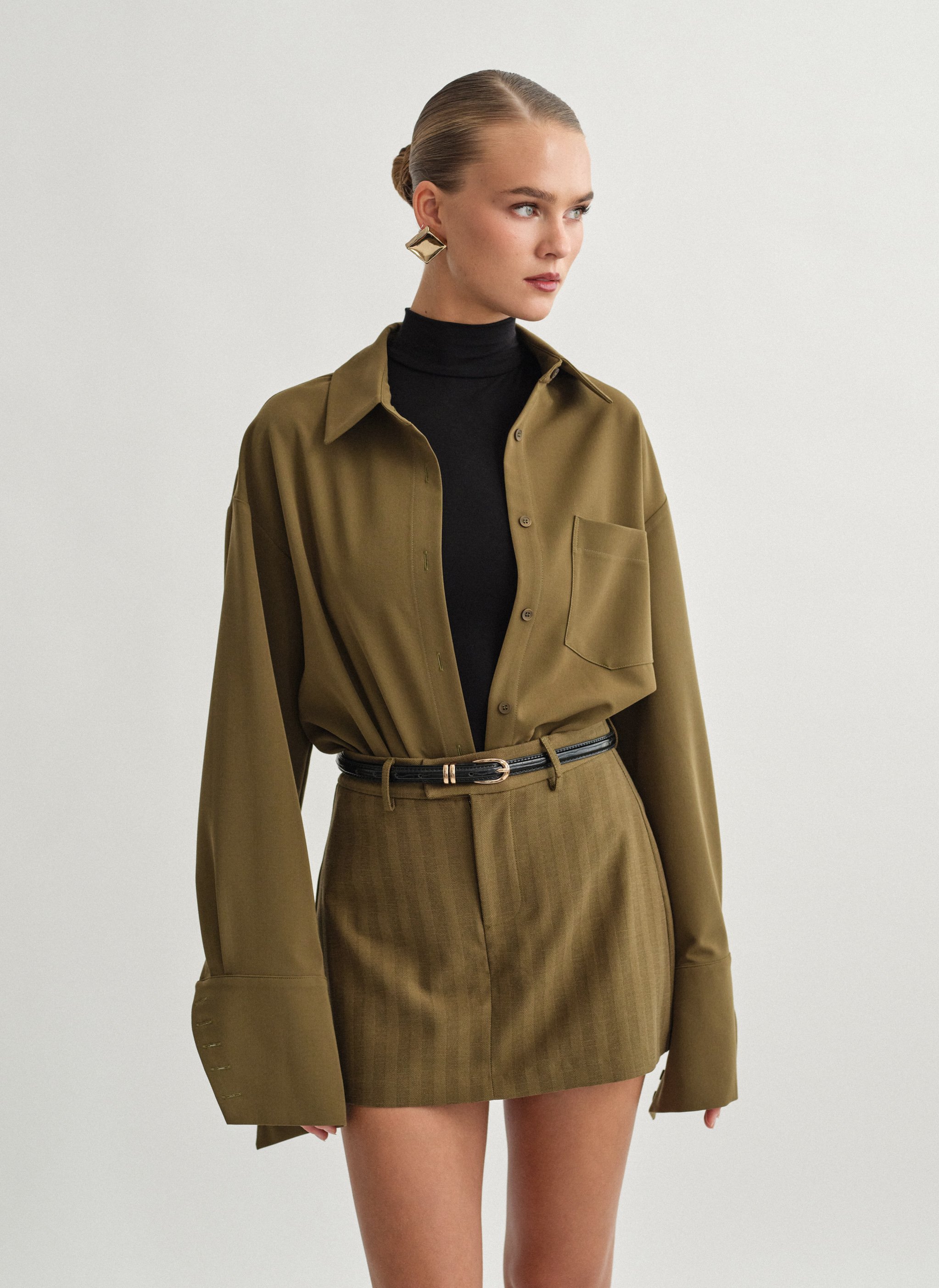 Υφασμάτινο oversized πουκάμισο με κλείσιμο με κουμπιά εμπρός και φαρδιά μανσέτα.