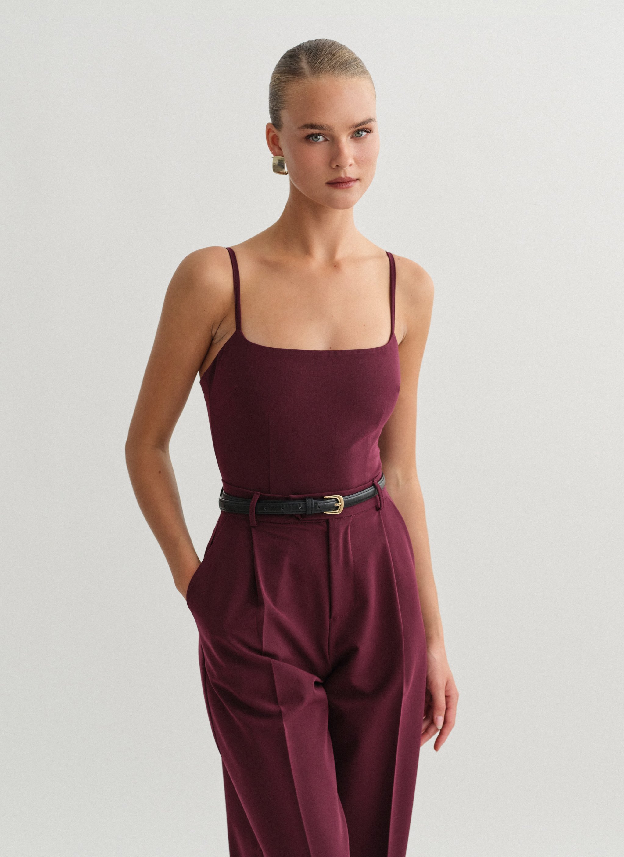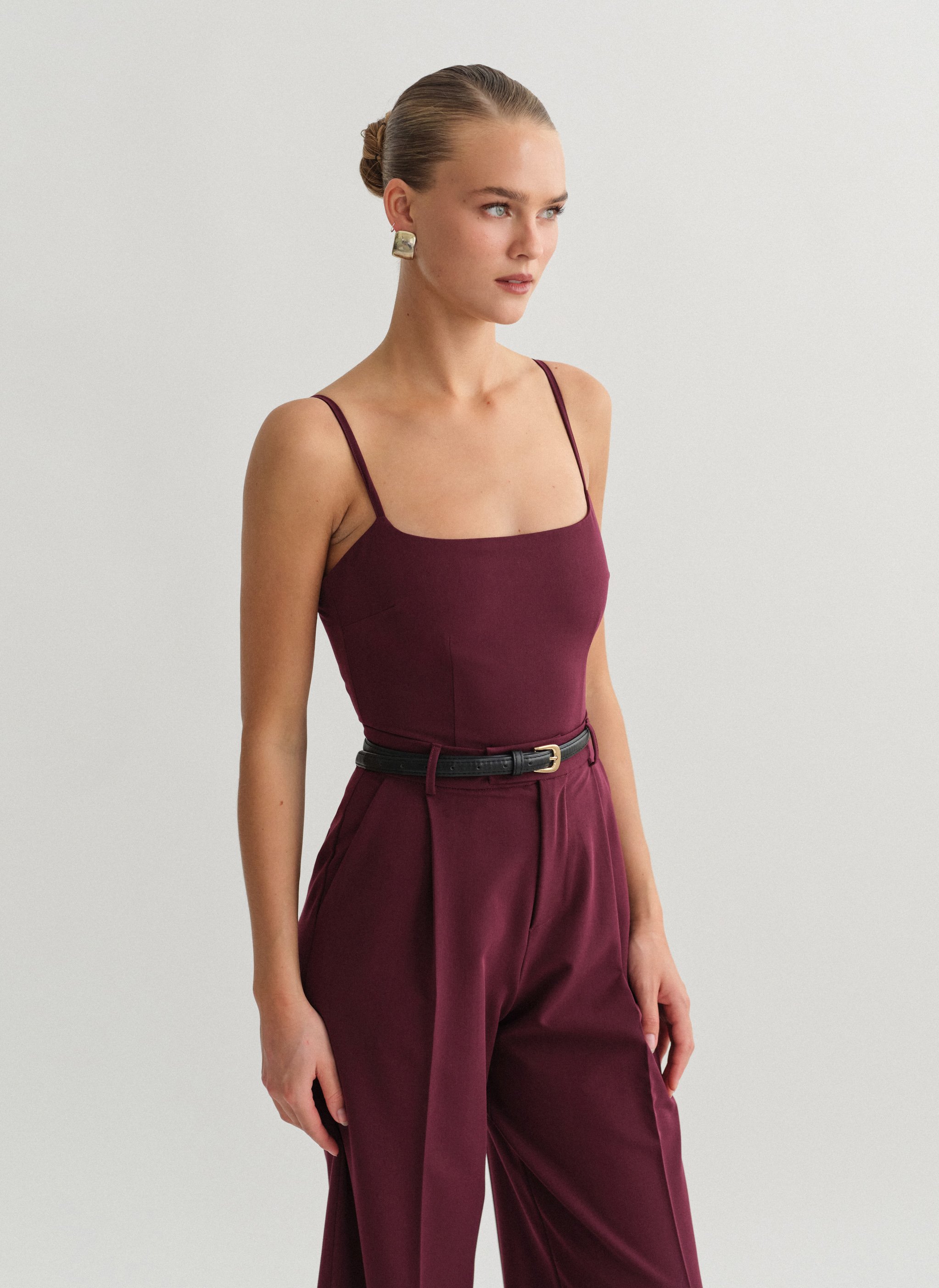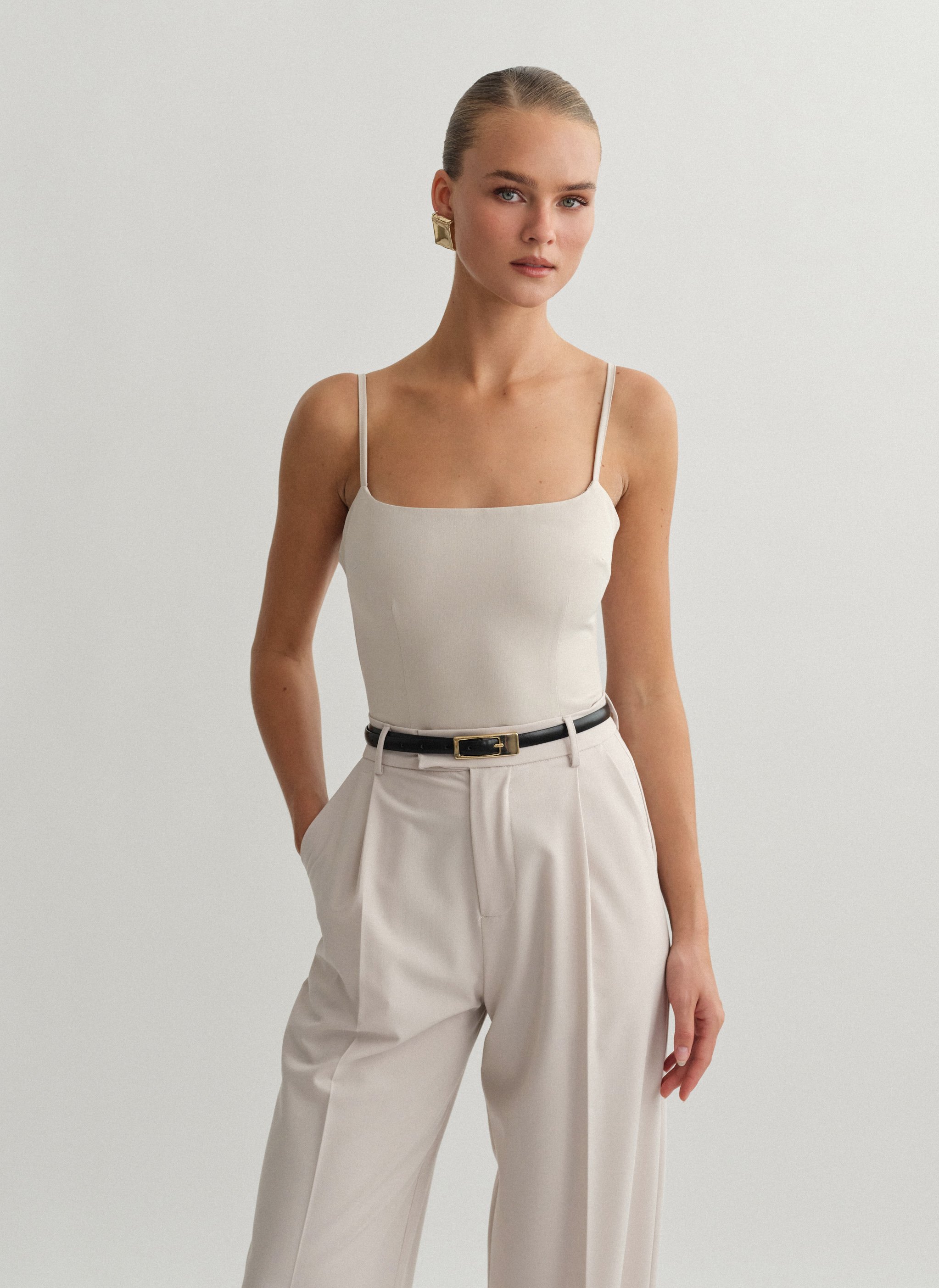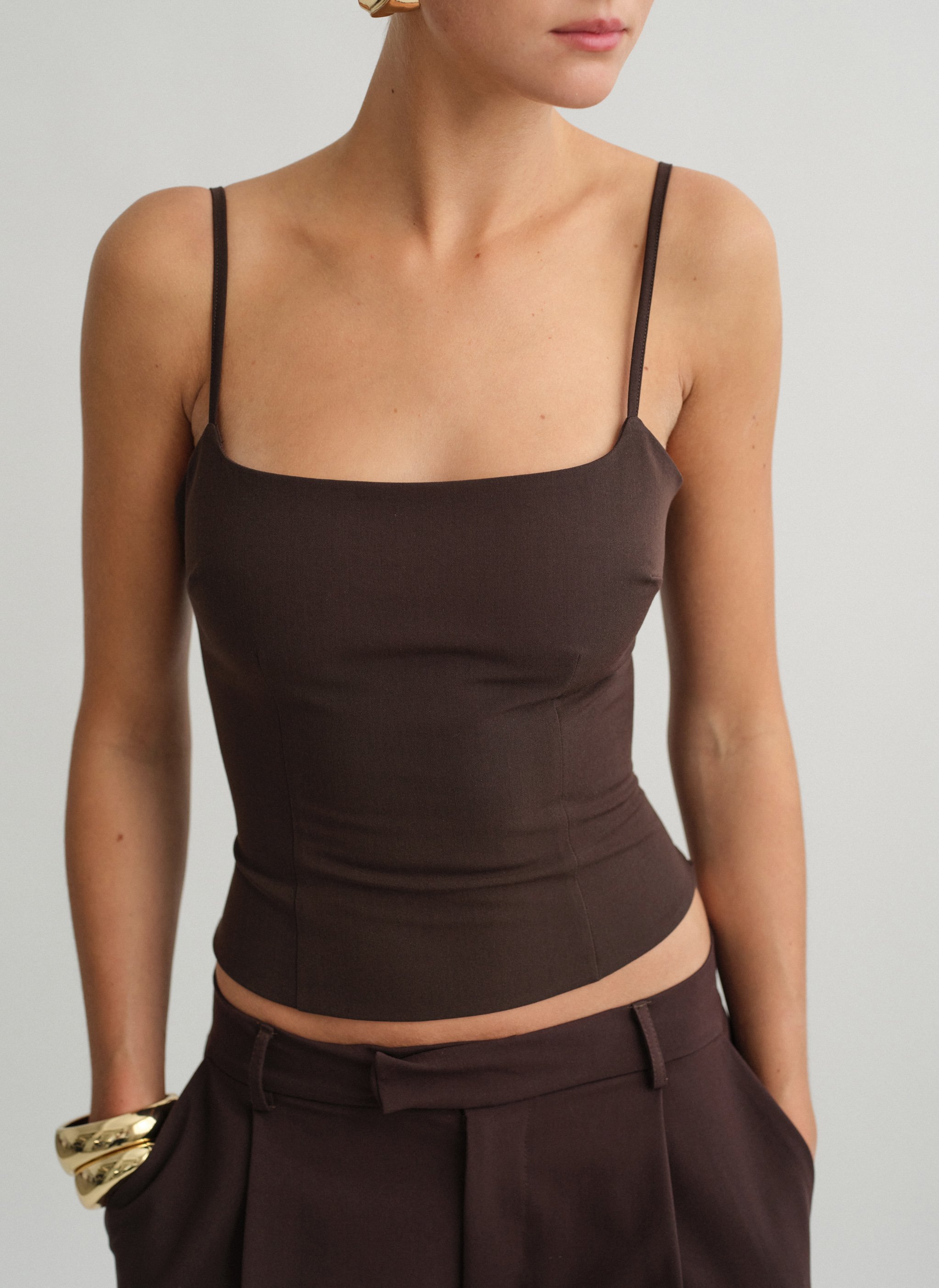 Υφασμάτινο τοπ με λεπτές ρυθμιζόμενες τιράντες και ίσια πλάτη.
