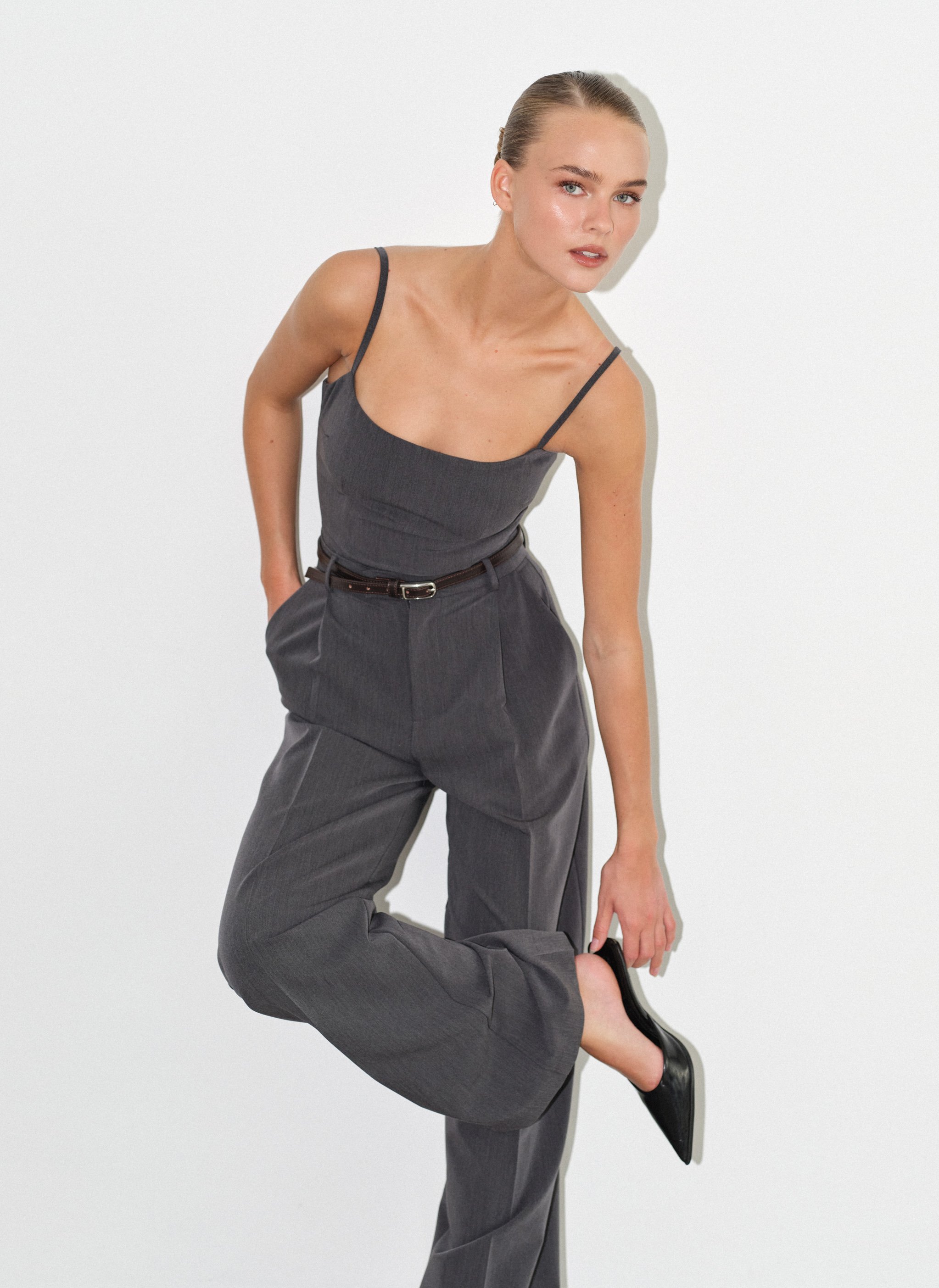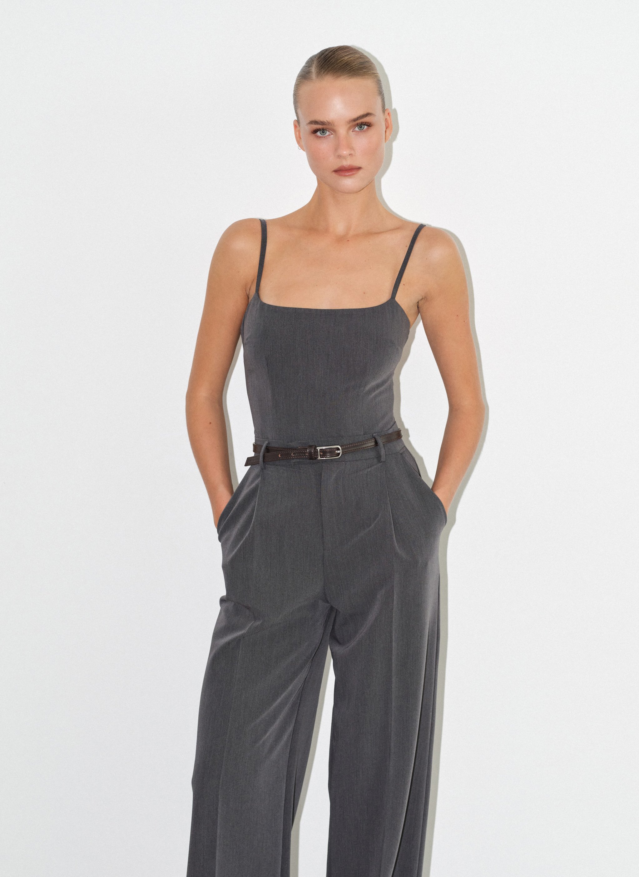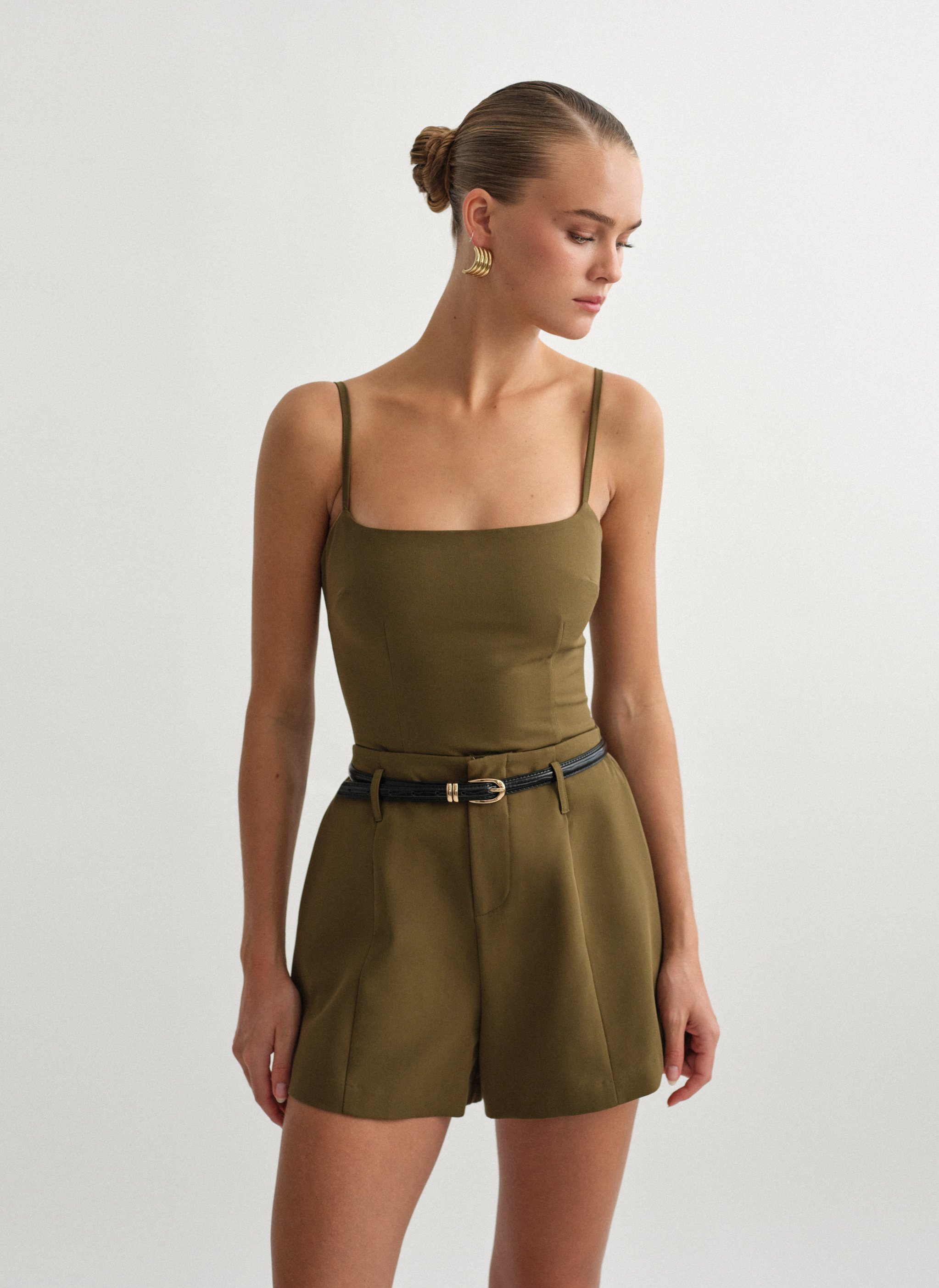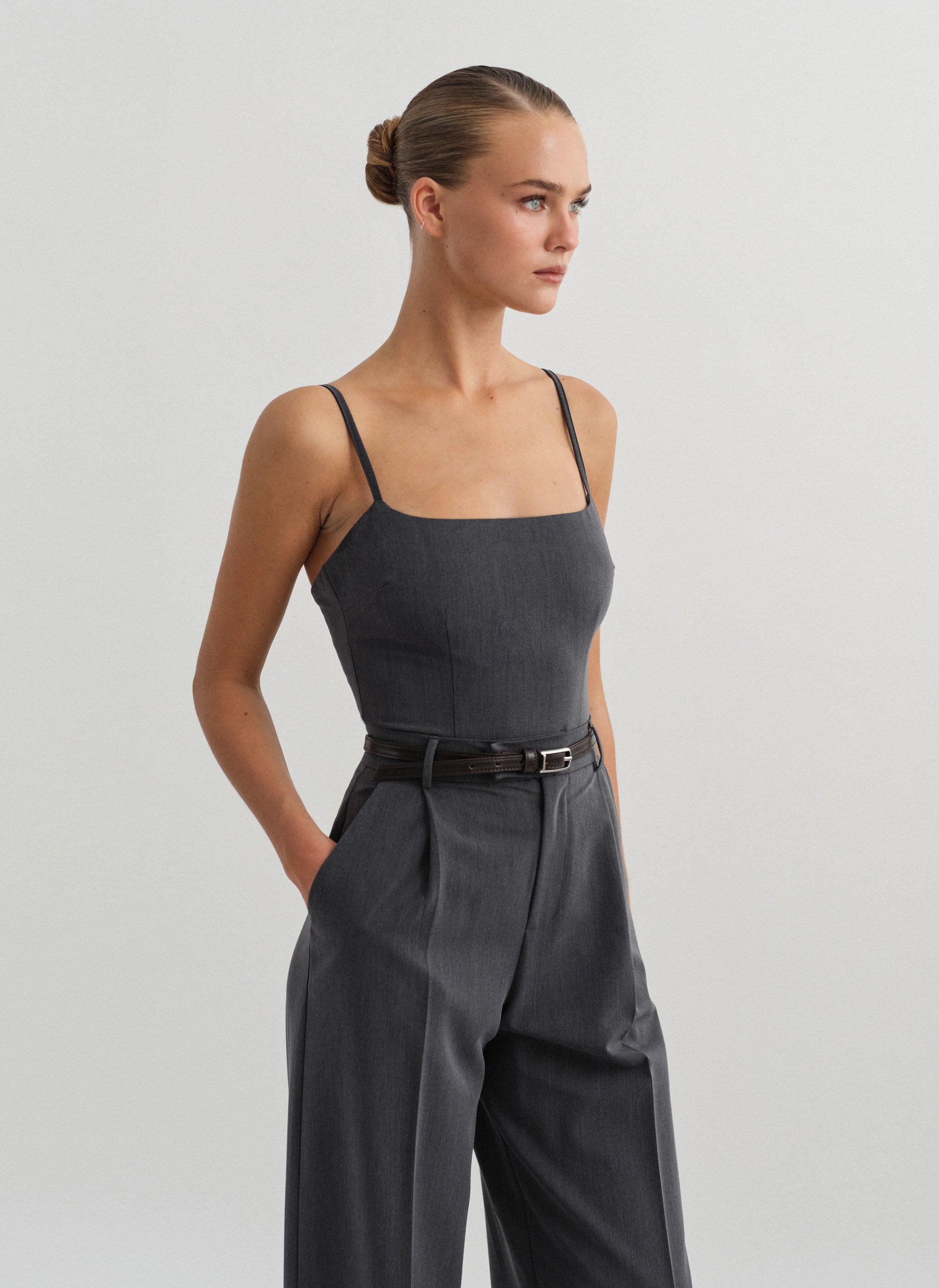 Υφασμάτινο τοπ με λεπτές ρυθμιζόμενες τιράντες και ίσια πλάτη.